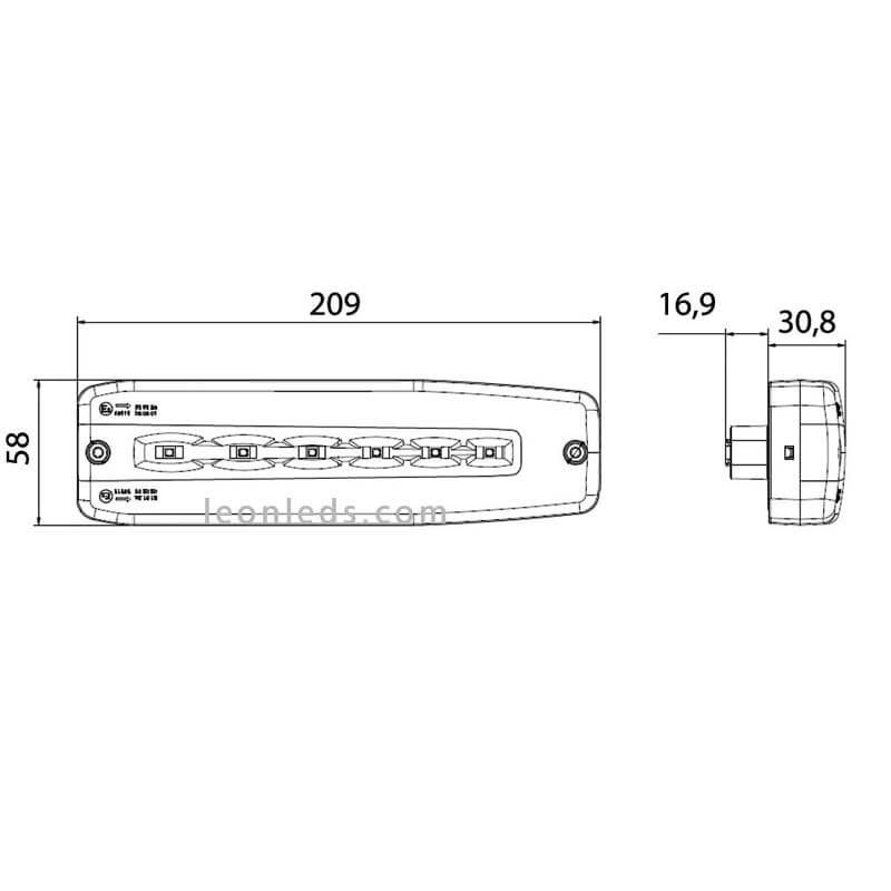 Kleiner Rücklicht LED Original von Vignal für 12-V- und 24-V-Installationen, mit einem Schutzgrad gegen Wasser und Staub von IP69K, mit hinterem Deutsch 4-Pin-Stecker. Dieser Kleine LED-Pilot ist perfekt für die Installation an der Oberseite der Lkw-Boxen, umfasst 3 Funktionen: progressiver Blinker, Bremslicht und Positionslicht.