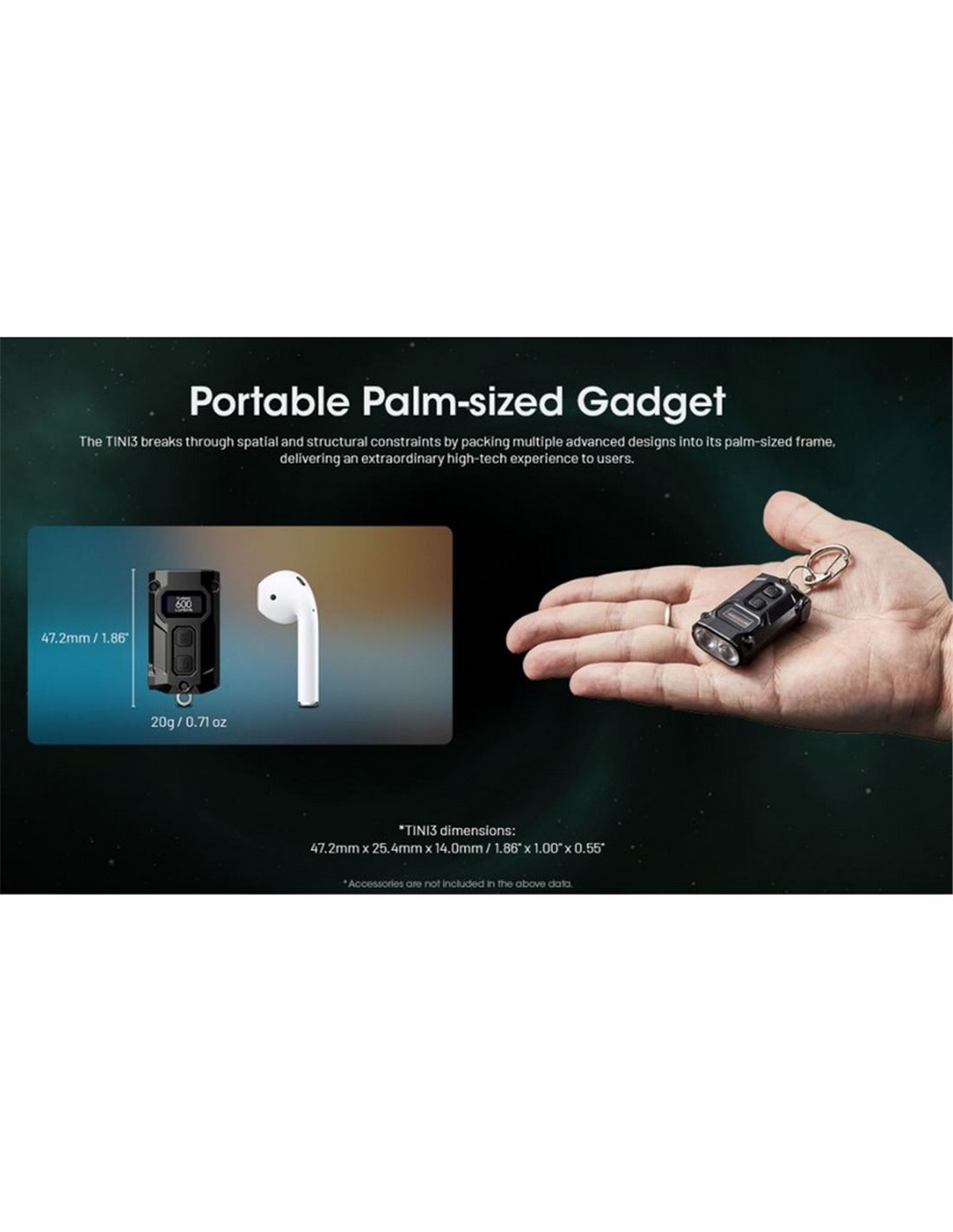 Kombiniere Design, Leistung und Komfort mit dieser wiederaufladbaren Schlüsselanhänger-LED-Lampe. Die NITECORE TINI 3 Bronze ist die perfekte Wahl für diejenigen, die eine verlässliche und tragbare Beleuchtung mit Stil suchen. Bestelle jetzt auf LeonLeds.com!