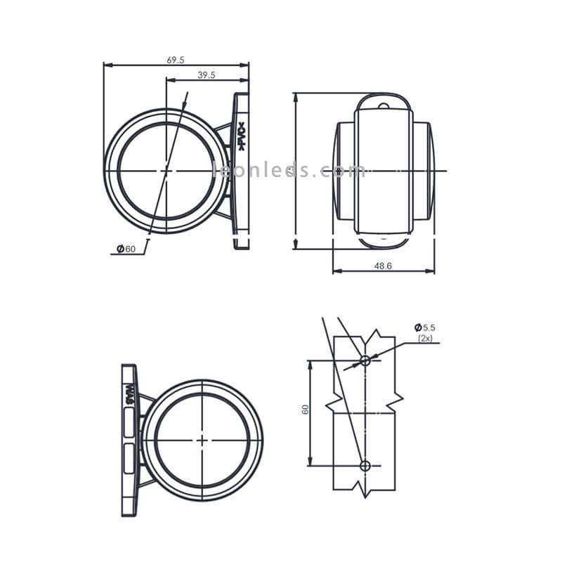 Kurzes LED-Galibo mit Neon-Effekt der W56N-Serie von Was, enthält 35 cm Kabel von 2X0,75mm2. Die Lampenschirme mit ausgeschaltetem Neon-LED-Licht sind vorne weiß und hinten rot. Zugelassen als seitliches Befestigungslicht und hat einen Schutzgrad gegen Wasser und Staub der Klasse IP68, ist völlig tauchfähig und hat keine Hand, kann sowohl rechts als auch links installiert werden.