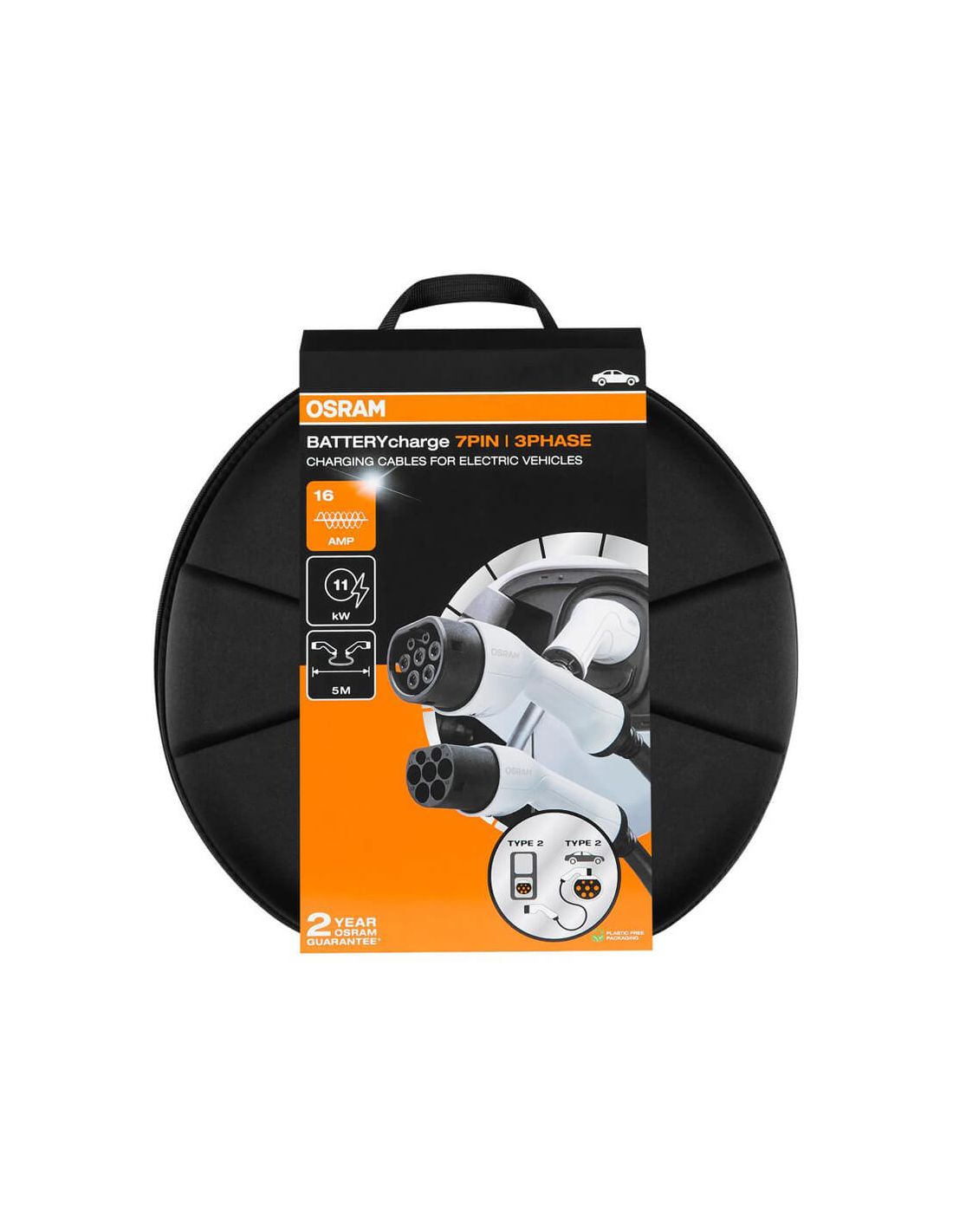 Laden Sie Ihr Elektro- oder Plug-in-Hybridfahrzeug schnell und sicher mit dem OSRAM BATTERYcharge 7PIN, einem dreiphasigen Kabel von 16A Typ 2, das maximale Effizienz und Haltbarkeit in jeder Umgebung bietet.