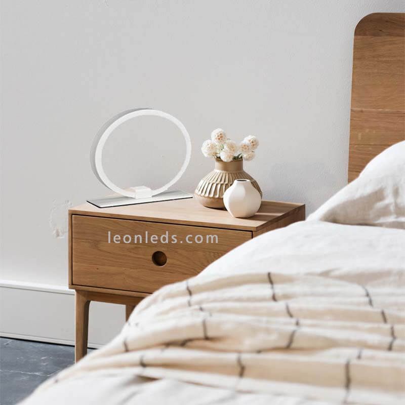 Runde Tischlampe LED im modernen Stil, mit einer Leistung von 8W, einer Lichtintensität von 350Lm und einer warmen Lichtfarbe von 3000K, gehört zur neuen Kollektion KiteSurf von Mantra und ist in Weiß und Schwarz erhältlich. Sie enthält 1,5 Meter Kabel und einen Schalter im Kabel, um die Lampe ein- und auszuschalten, ohne sie vom Strom zu trennen.