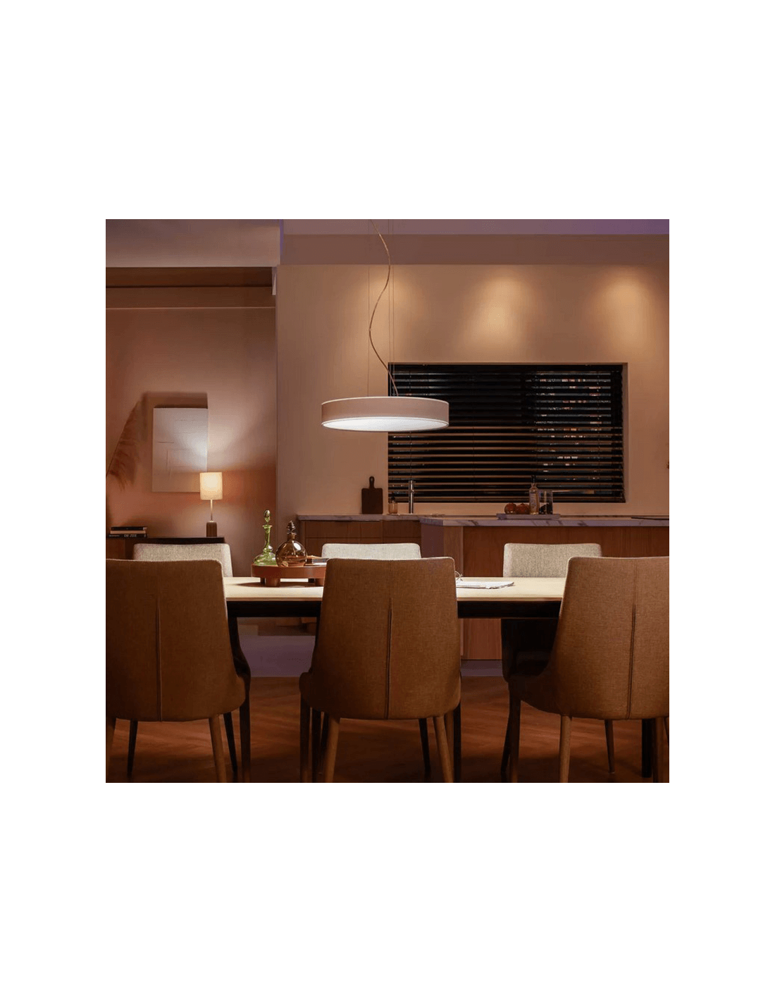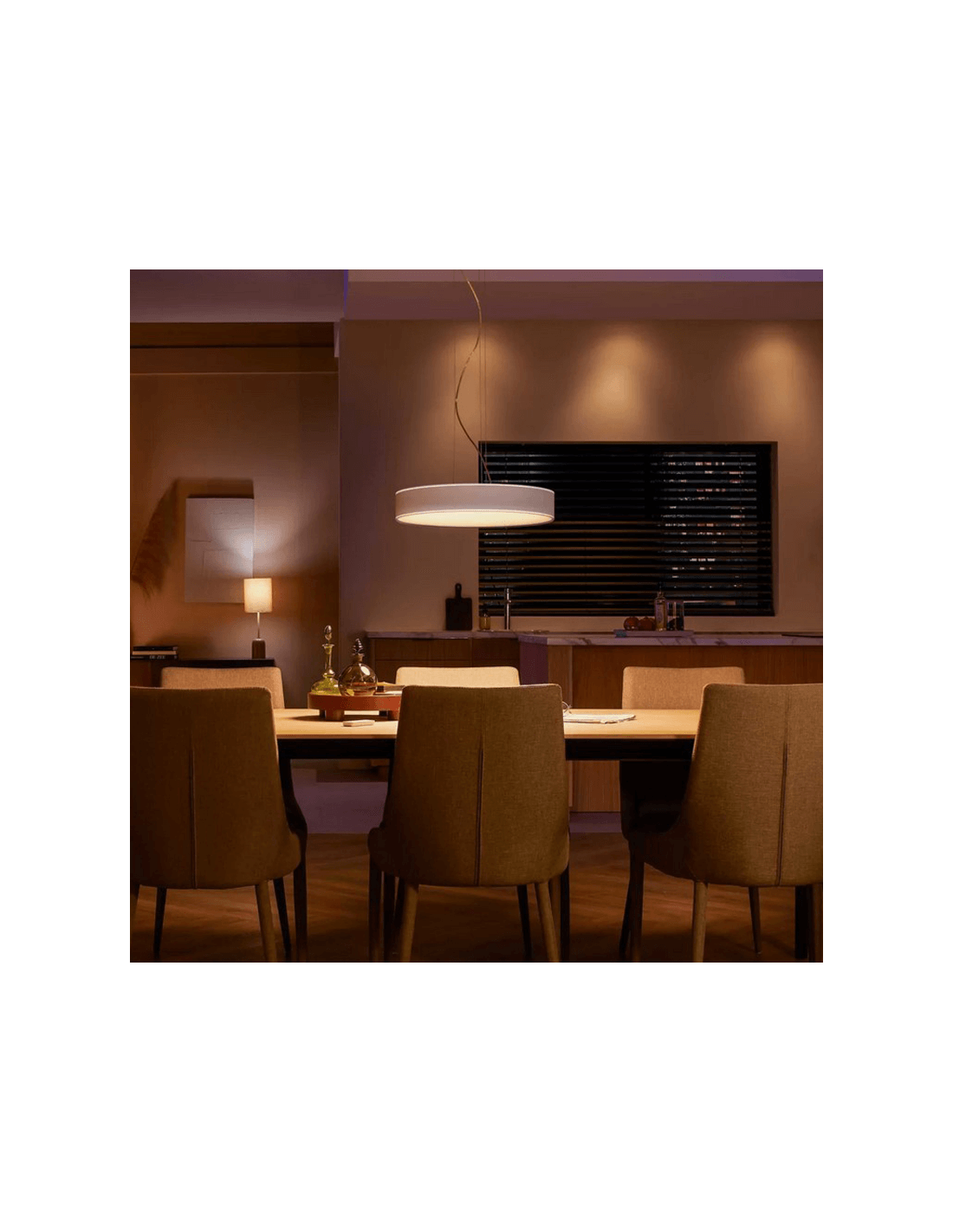 Sie beleuchtet mit einer einstellbaren Farbtemperatur von 2.200K - 6.500K mit Hue White Ambiance, einem Lichtstrom von 4.300 Lumen und einer maximalen Leistung von 33,5W. Einstellbar über den mitgelieferten Schalter und Fernbedienung. Ein Produkt, das das Beste bietet, um sich deinem Lebensstil anzupassen.