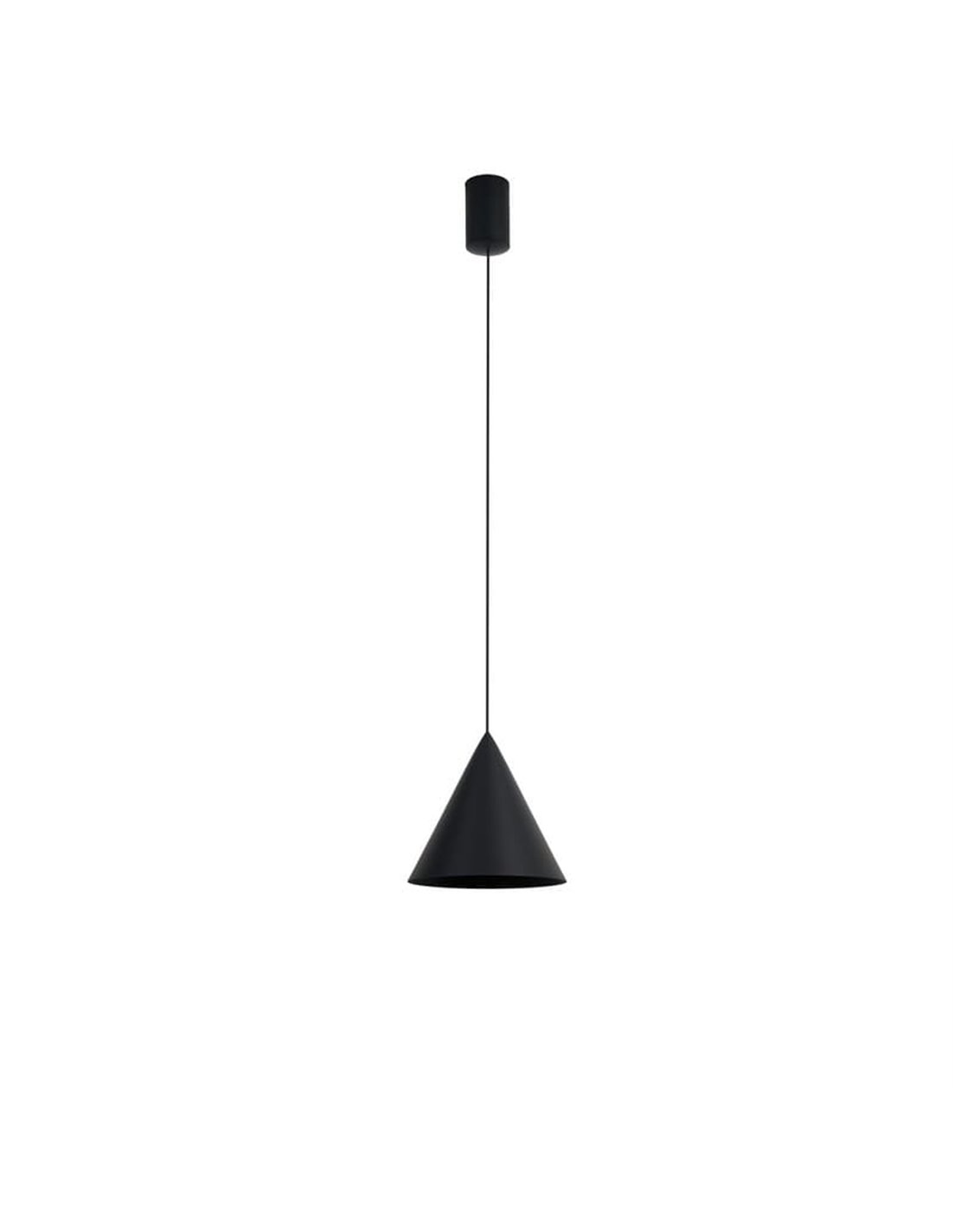 Die Hängelampe CONO in Schwarz hat ein elegantes und zeitgemäßes Design, das perfekt zu modernen Interieurs passt. Ihr konischer Schirm richtet das Licht direkt nach unten und bietet eine ideale fokussierte Beleuchtung für Bereiche, in denen Präzision erforderlich ist, ohne die Wärme der Umgebung zu verlieren.