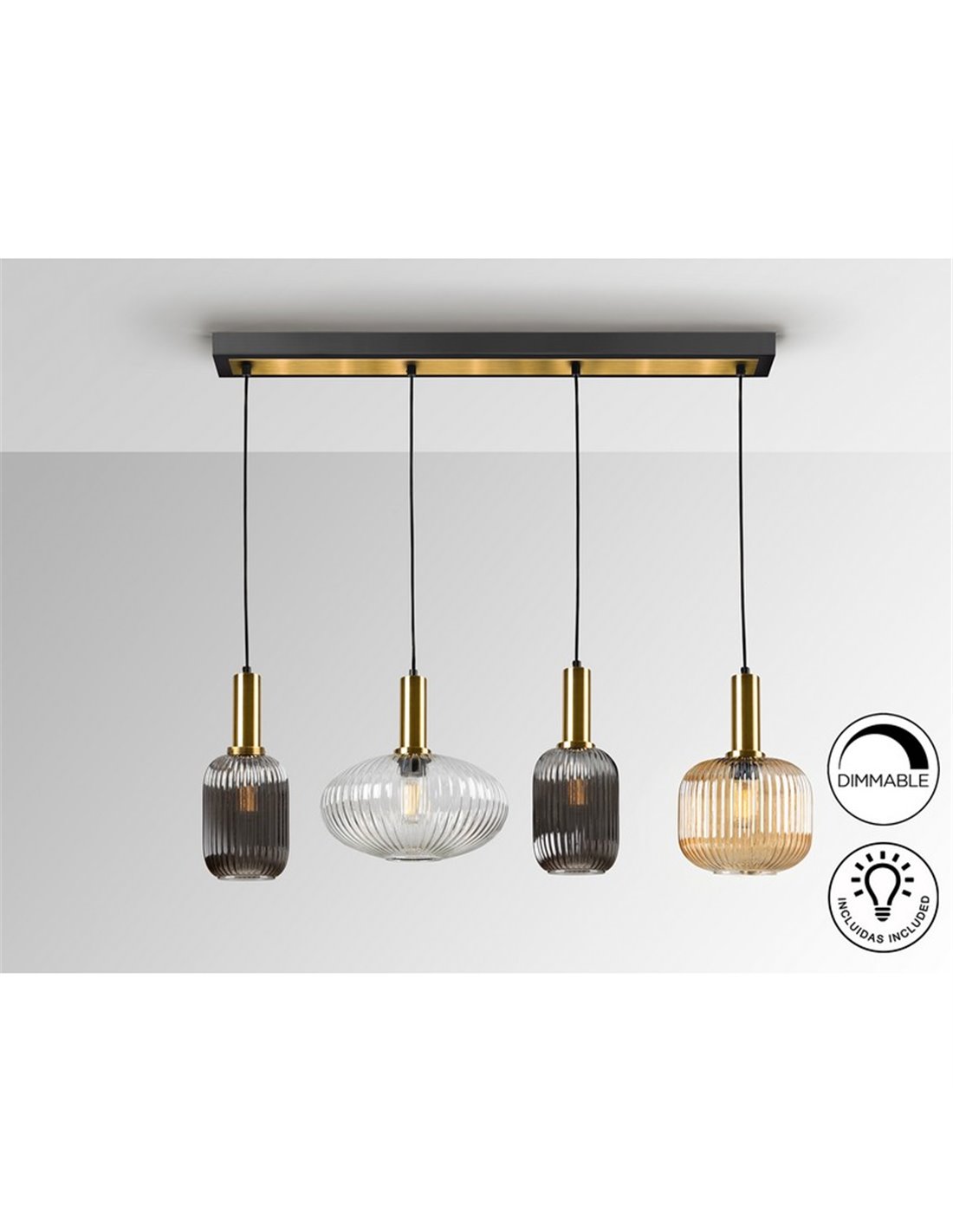 Deckenlampe NORMA 18 Lichter E27 dimmbar Schwarz und Messing