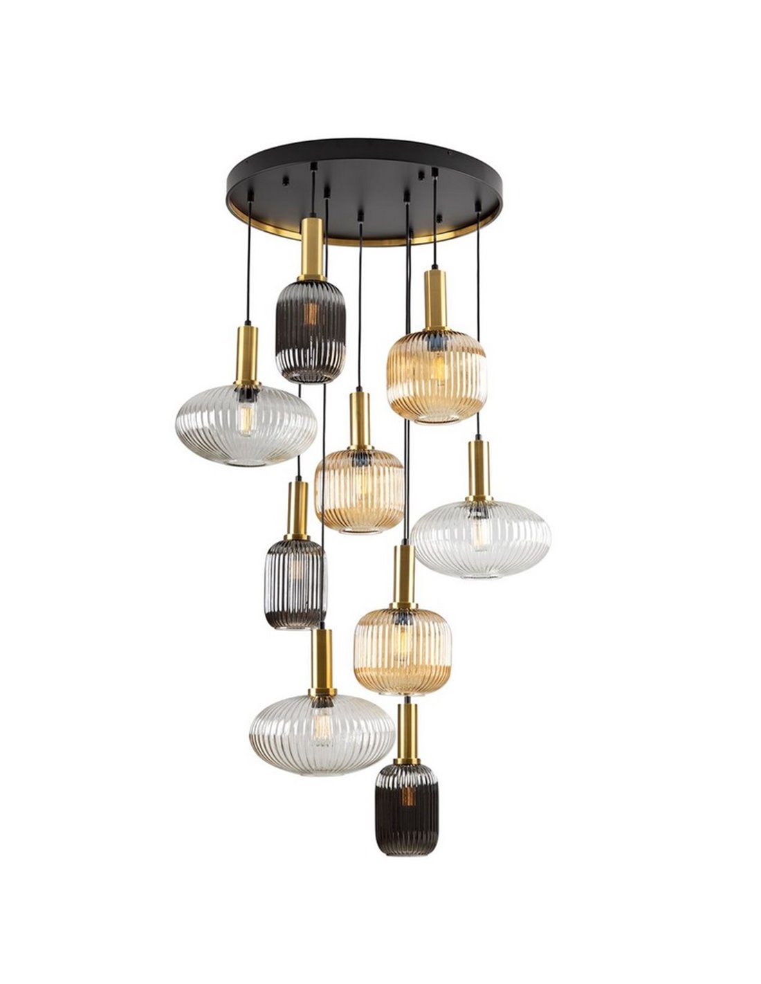 Deckenlampe NORMA mit 9 Lichtern in Schwarz und Messing