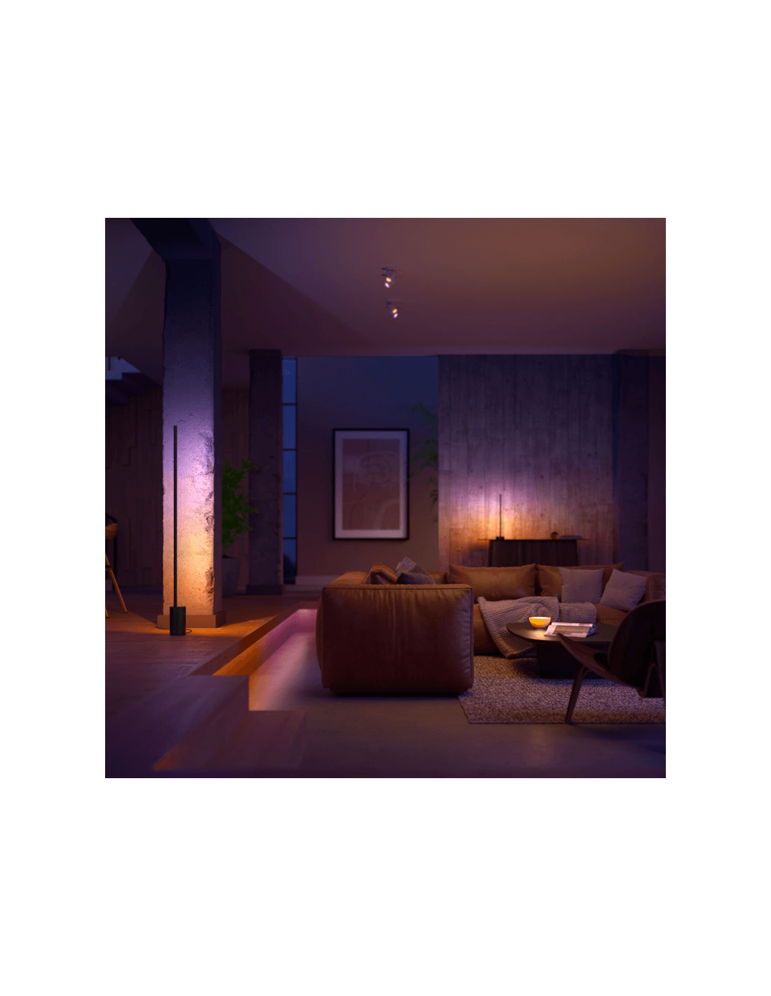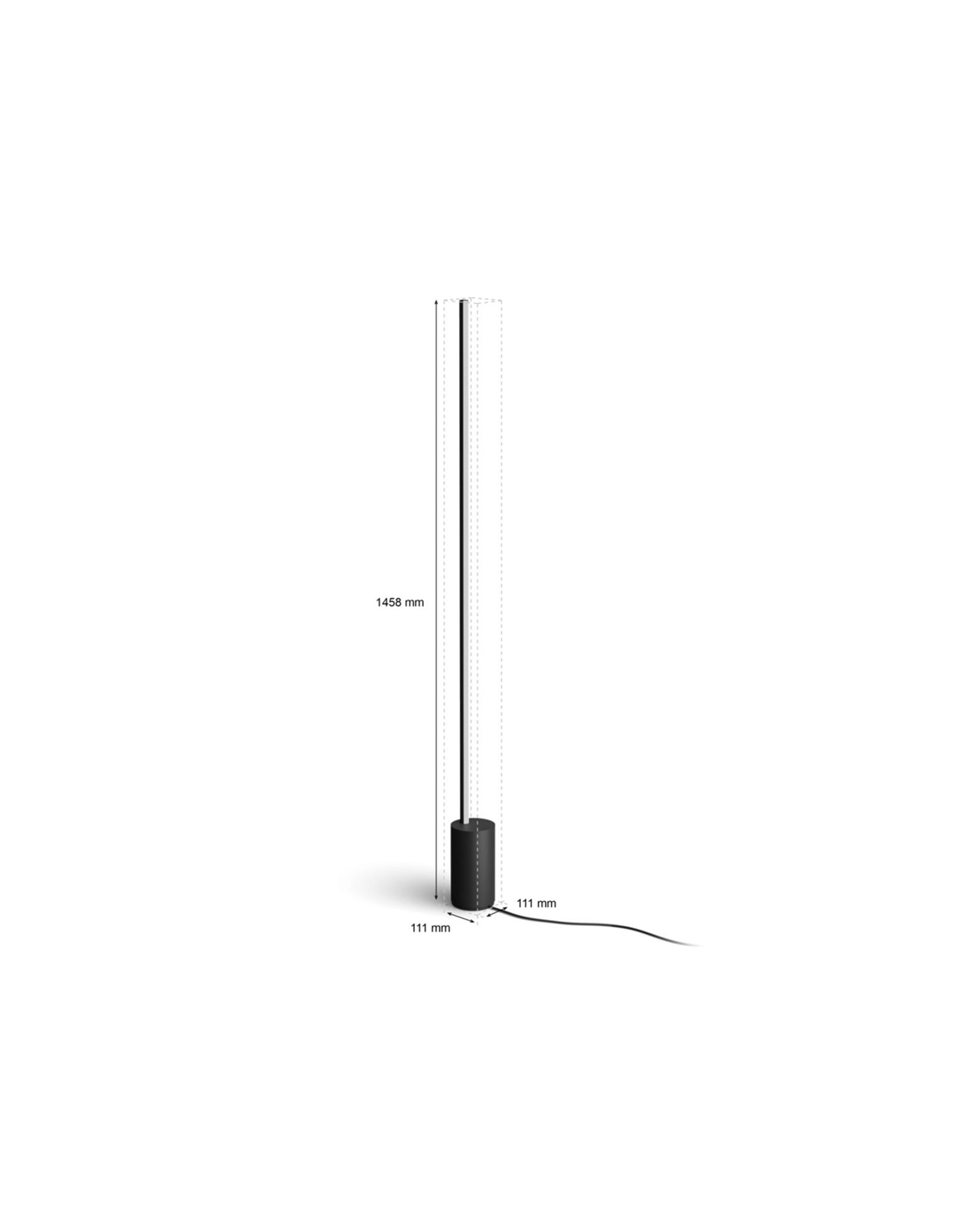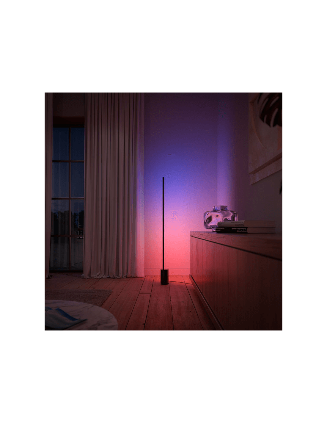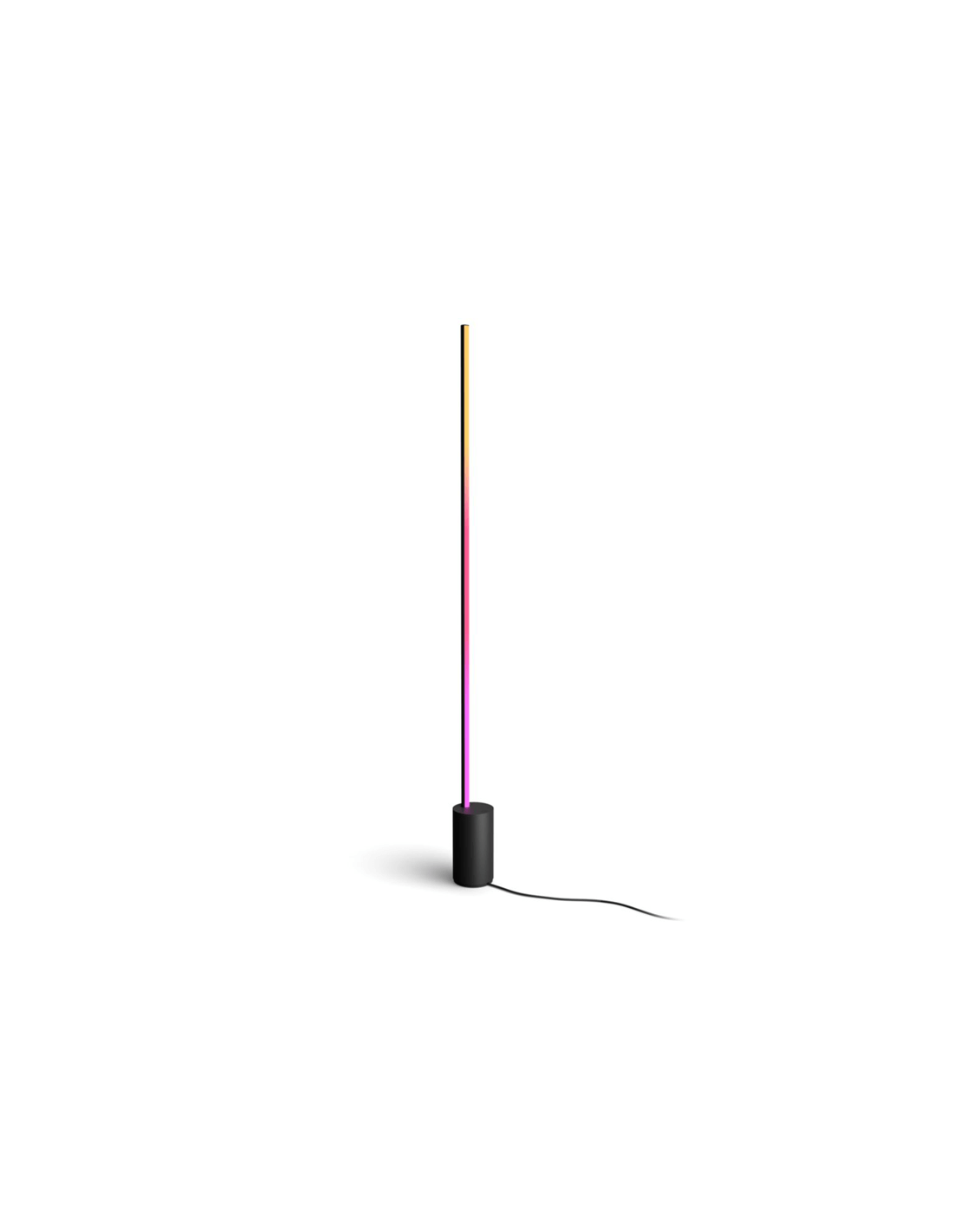 Entdecken Sie eine neue Art der Beleuchtung mit dem schwarzen Design der Stehlampe Gradient Signe von Philips Hue, die mehrere Farben kombiniert, um die Wände mit einem einzigartigen Farbverlauf zu gestalten. Sie hat eine Höhe von 145,8 cm, eine Länge von 11,1 cm, eine Breite von 11,1 cm und ein Nettogewicht von 2,275 kg.
