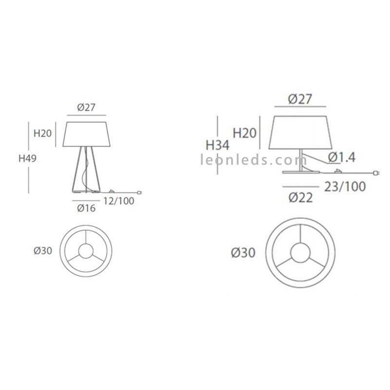 Sie ist perfekt als dekorative Nachttischlampe in jedem Zuhause, Hotel oder Hostel. Ihre Installation sollte in Innenräumen erfolgen. Sie hat eine Höhe von 49Cm und eine Breite von 30Cm. Es handelt sich um eine minimalistische und moderne Lampe, die in jedem Innenraum installiert werden kann, da sie einen Schutz gegen Wasser und Staub von IP20 hat.