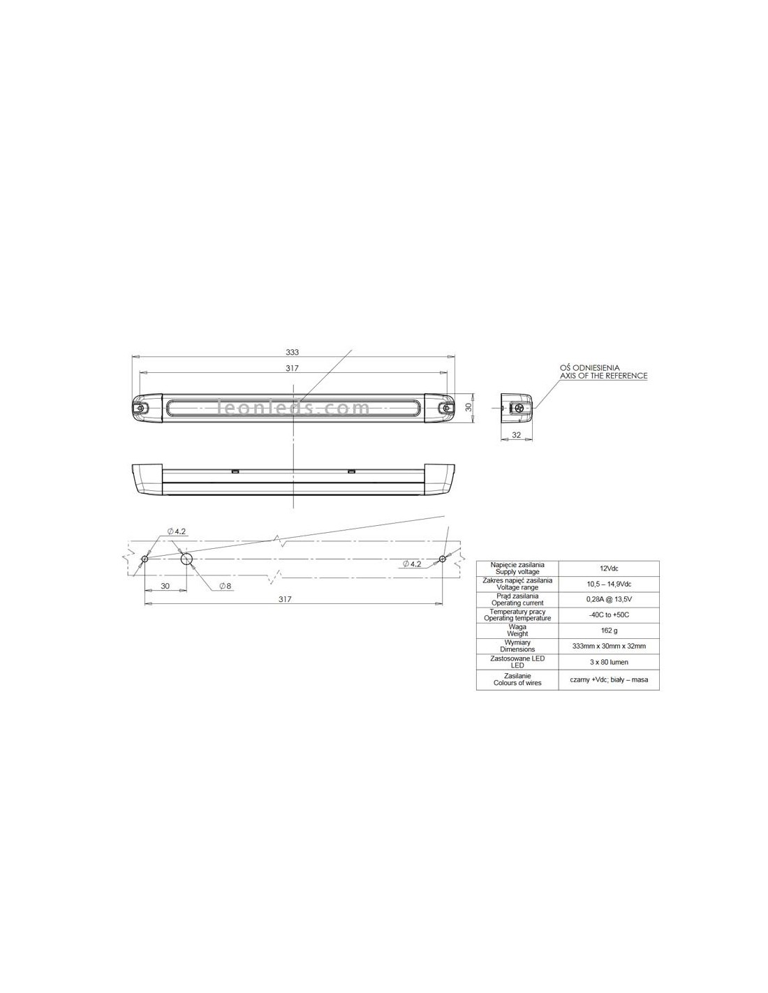 Diese LED-Leiste hat eine Länge von 33,3 cm und kann mit zwei Schrauben an den Enden oder mit Kleber an beiden Enden installiert werden (Schrauben und Kleber für die Installation sind enthalten).