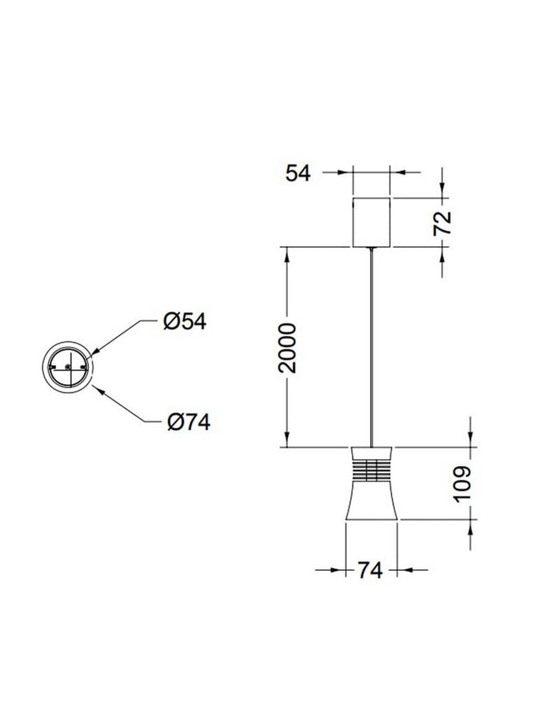 Abmessungen: ↕ 200Cm maximale Höhe | Ø 74Cm