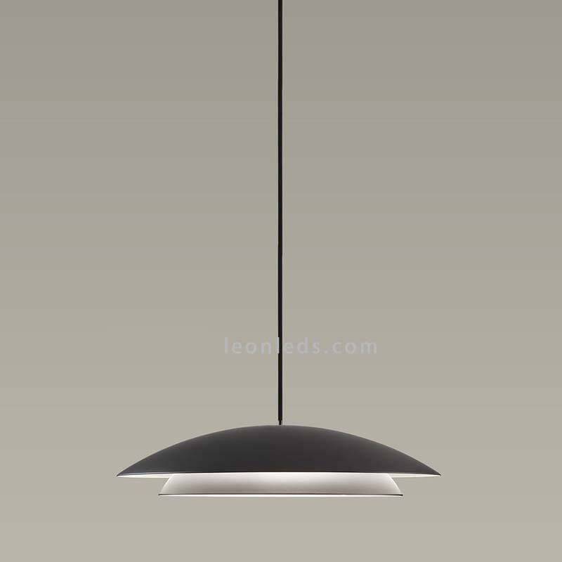 LED-Hängeleuchte doppelte Metallschirme und zwei Größen Noway ist eine Leuchte, die mit ihrem Schwebefeffect und Leichtigkeit überrascht. Sie kann in unterschiedlichen Höhen installiert werden, da sie eine maximale Höhe von 120 cm hat. Diese moderne Deckenleuchte ist in zwei Farben erhältlich:
