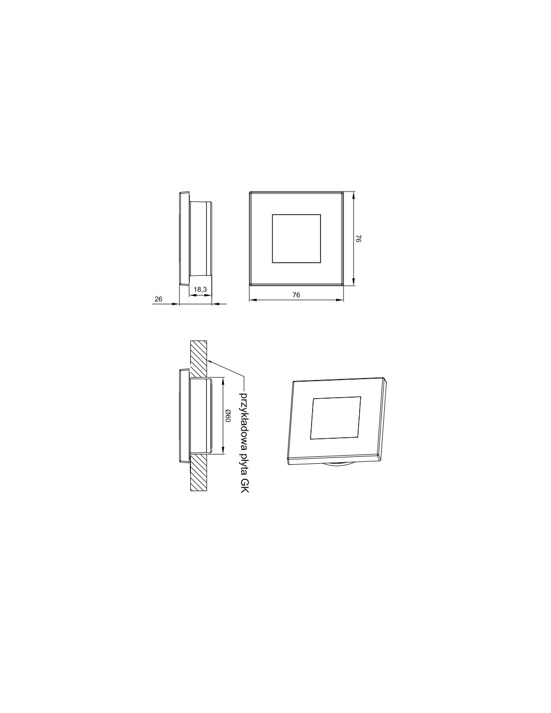 Quadratische Innenleuchte LED Fristom FT-044 LED für Autos und Boote zum Einbauen in ein rundes Loch mit einem Durchmesser von 60 mm.