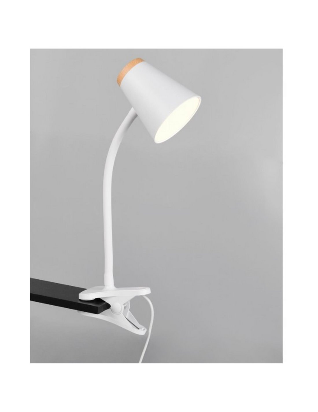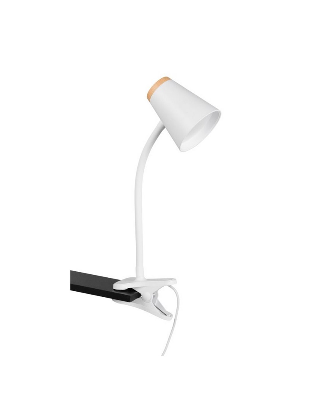 Die LED-Lampe mit Klammer PONGO bietet effiziente Beleuchtung mit ihrem flexiblen Arm und verstellbaren Klammer, ideal für Schreibtische, Regale oder Betthäupter. Mit 4,5W Leistung und 500lm warmem Licht (3000K) schafft sie eine einladende Atmosphäre. Sie enthält einen integrierten Schalter und hat die Zertifizierung IP20 für die Nutzung in Innenräumen.