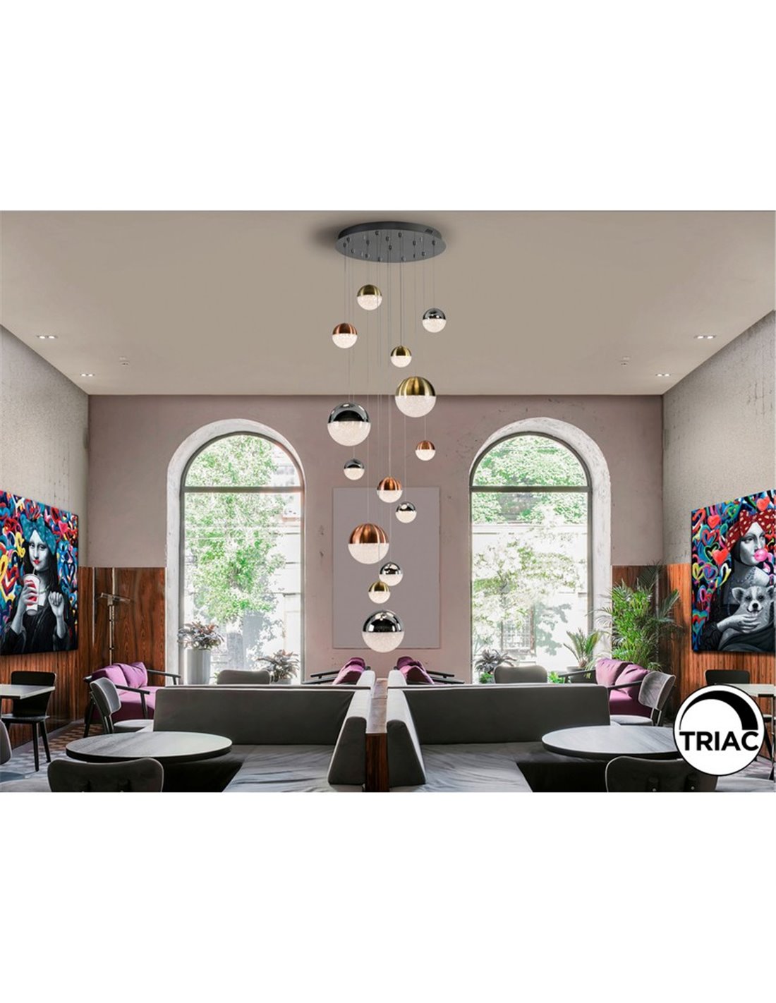 Hängelampe SPHERE mit 14 Lichtern für hohe Decken