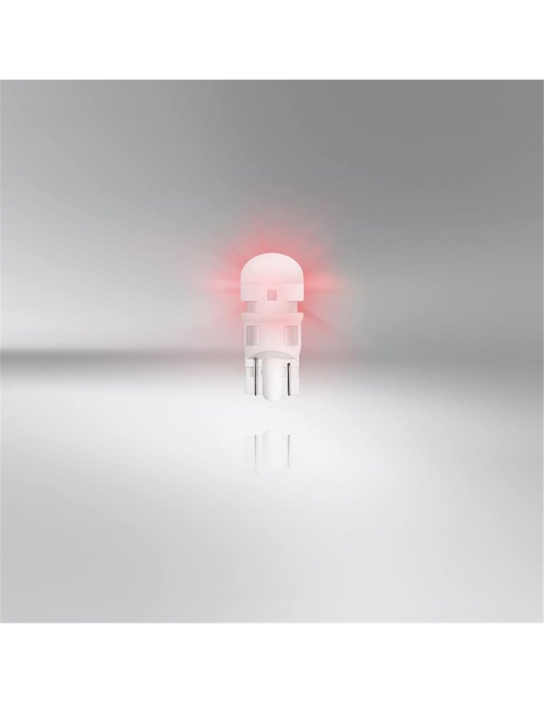 Rote LED W5W-Leuchtmittel der LEDriving SL-Reihe von OSRAM, mit Sockel W2.1x9.5d. Sie bieten intensive Farben, einen geringeren Verbrauch und eine längere Lebensdauer als herkömmliche Halogenlampen.