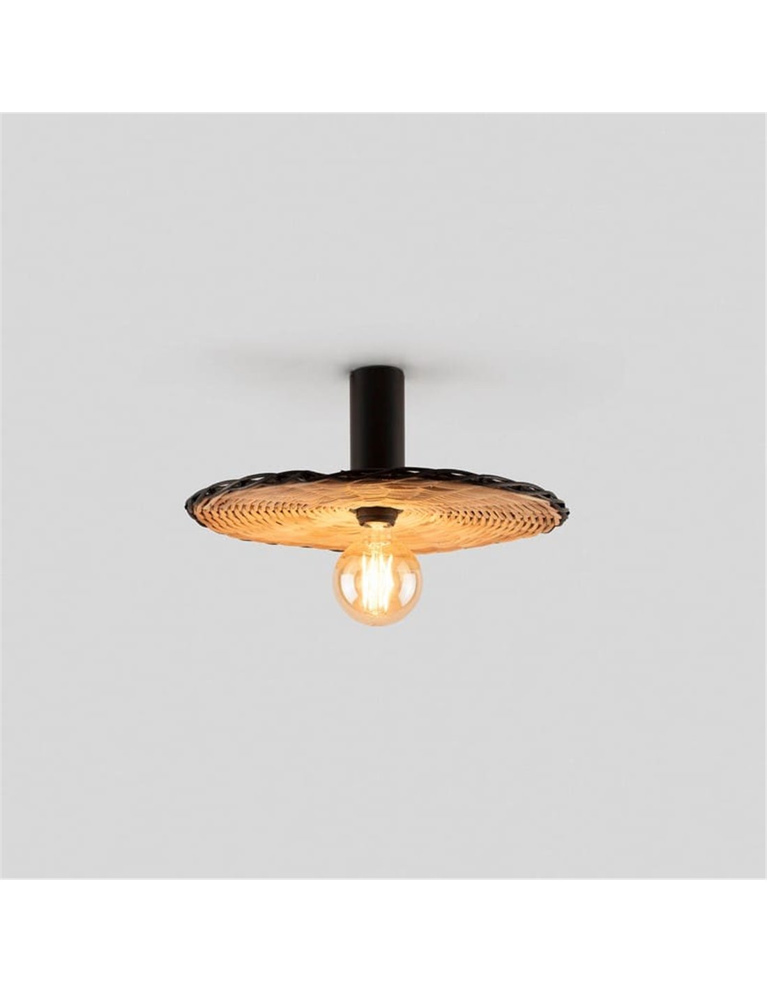 Aplique/Plafón mit kurzer schwarzer Basis aus Rattan COSTAS, klein, E27 ø400*70mm