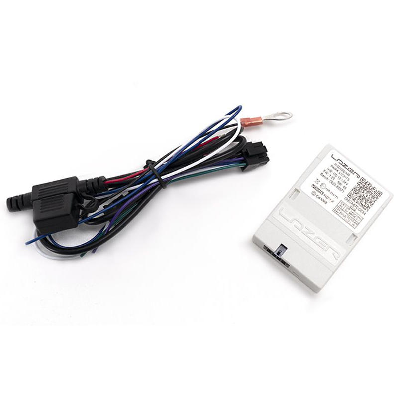 Die Schnittstelle wurde in Zusammenarbeit mit dem britischen Hersteller CanM8 mit moderner Technologie entwickelt, um sowohl die Ausgänge der Fernlichter als auch der Seiten-/Standlichter zu identifizieren, was sie zur perfekten Lösung für die Nutzung aller Lazer E-mark zugelassenen LED-Scheinwerfer macht.