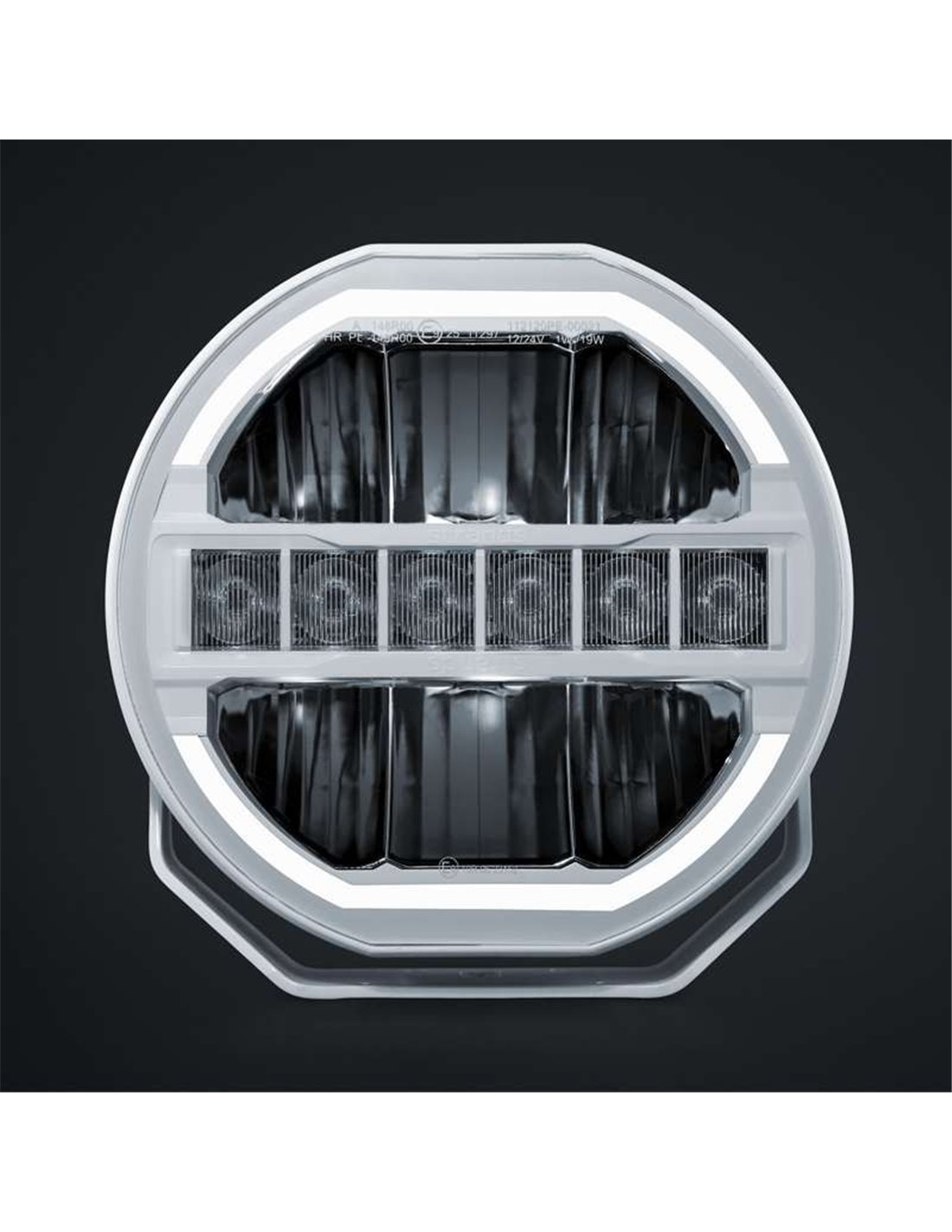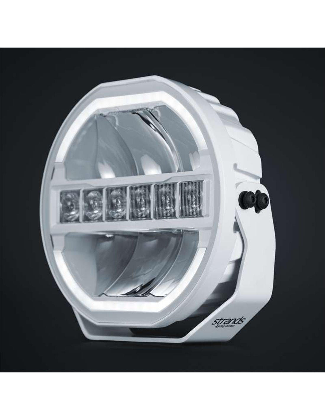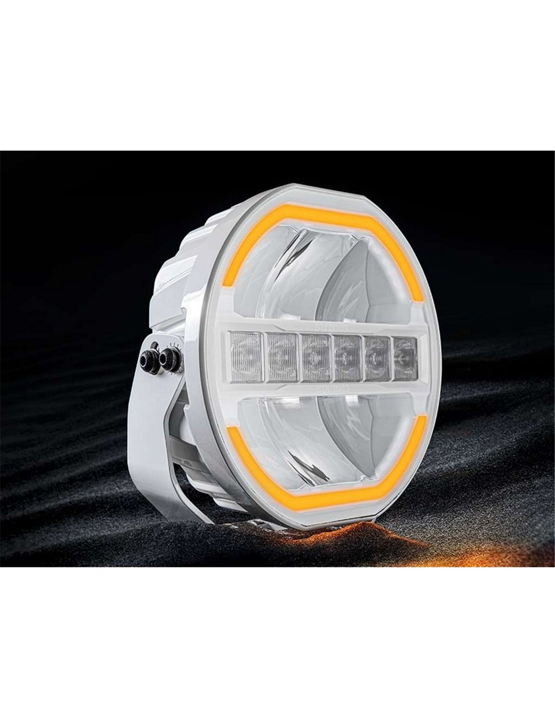Inklusive Doppeltpositionslicht in weiß oder amber, mit visuellem Effekt um den Umfang des Scheinwerfers. Das weiße Aluminiumgehäuse und die klare Polycarbonatlinse bieten Widerstandsfähigkeit, ohne auf ein modernes und sauberes Design zu verzichten.