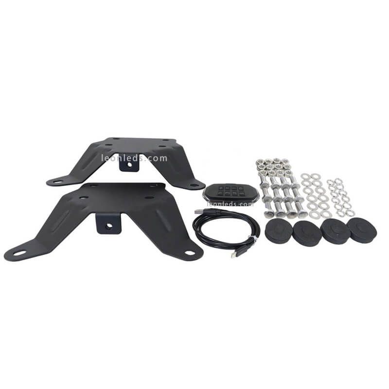 Inklusive: Schrauben, kabelgebundene Fernbedienung, lichtemittierende Brücke und Halterungen, optionale kabellose Fernbedienung.