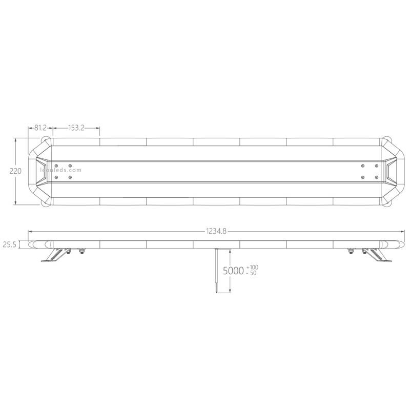 Genehmigtes blinkendes LED-Amberbrücke, geeignet für 12 und 24 Volt, mit 5 Metern Kabel für die Installation, einschließlich einer kabelgebundenen Steuerung und (optional) einer wiederaufladbaren kabellosen Fernbedienung, die es ermöglicht, die Brücke auch aus der Ferne zu steuern, ohne im Fahrzeug sein zu müssen. Diese LED-Amberbrücke ist genehmigt mit der ECE NR65 TA2 Class2, Sae J845 Class1 ECE R10 CISPR 25 Genehmigung.