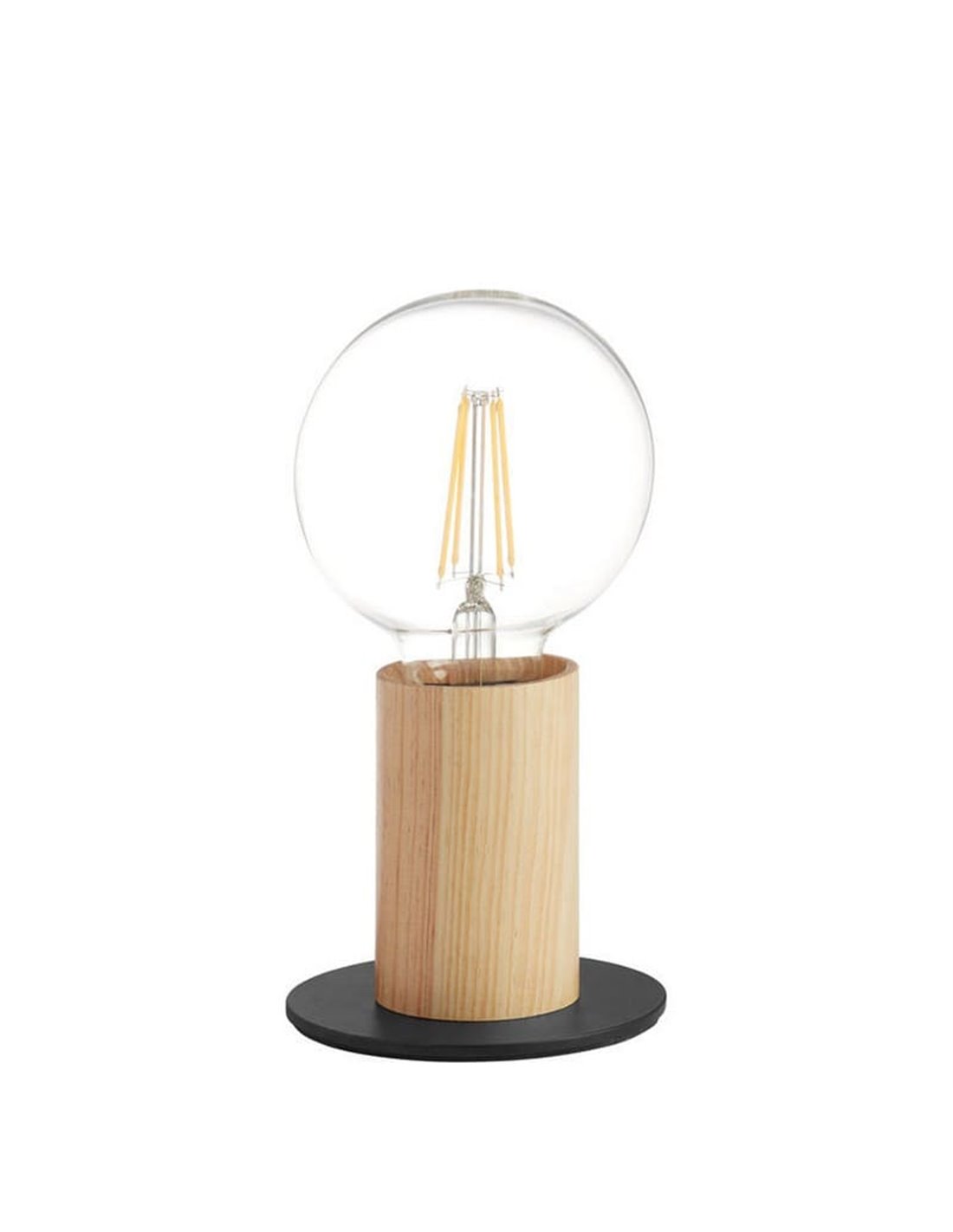 Die minimalistische Tischlampe KOPA kombiniert einen Zylinder aus Naturholz mit einer schwarzen Metallbasis, die dafür entworfen wurde, eine dekorative E27-Glühbirne sichtbar zu zeigen. Ihr kompaktes Format ist perfekt, um einen ambienten Lichtpunkt auf Regalen, Nachttischen oder Anrichten zu schaffen. Ungefähre Abmessungen: ↕ 8cm | Ø 10cm. Glühbirne E27 (nicht enthalten).