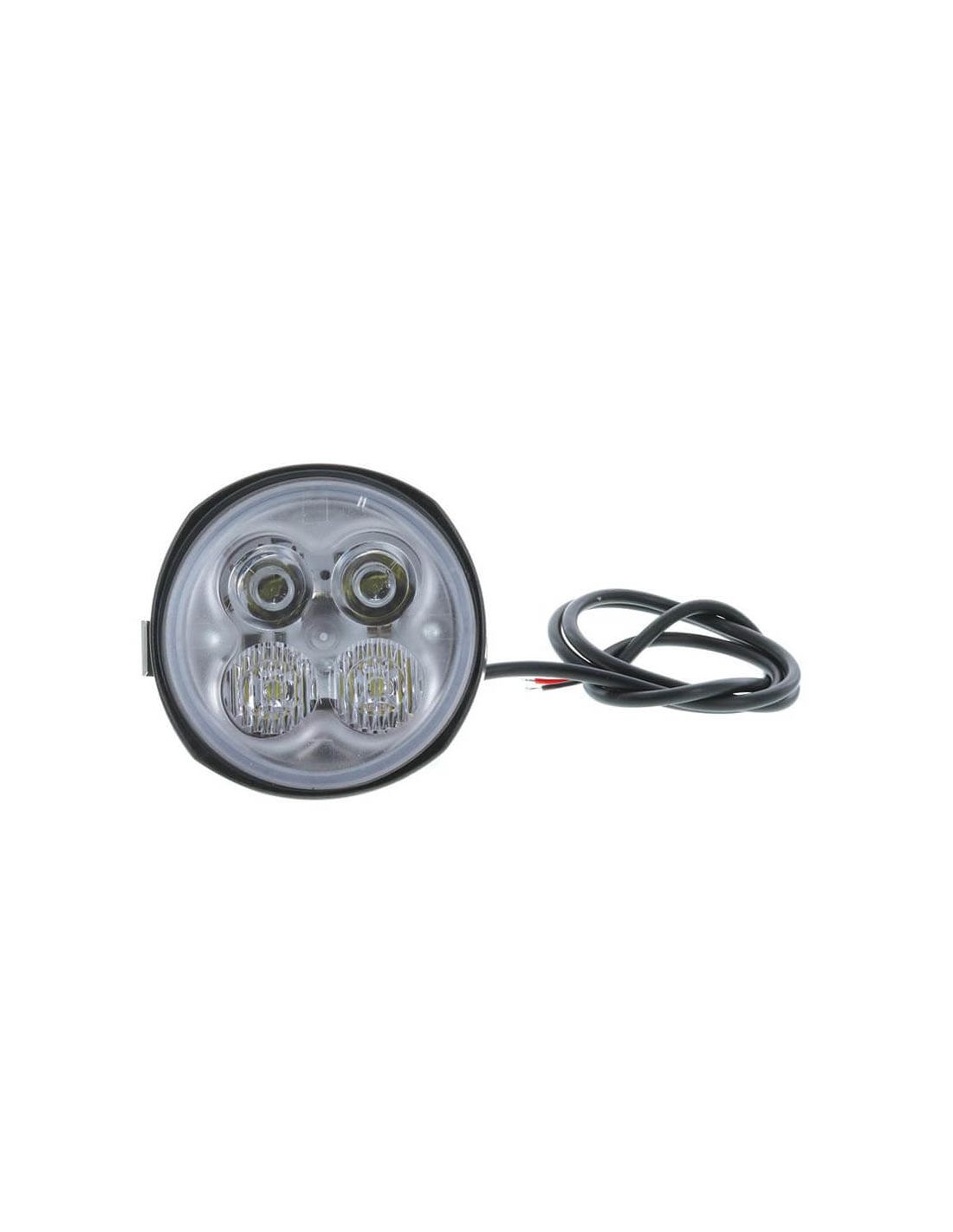 Runder LED-Einbaustrahler für Landini Traktoren mit einer Leistung von 1500Lm und geeignet für 12V und 24V, beinhaltet einen Deutsch-Stecker an der Rückseite des Scheinwerfers, der Stromverbrauch beträgt nur 15W.
