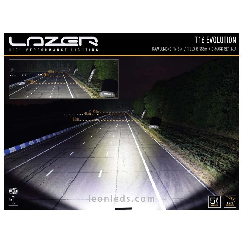 LED-Leiste für Fahrzeuge 4X4, Lkw, Automobile von der Marke Lazer. Das Modell T16 Evolution bietet uns 0.25Lx in einer Reichweite von mehr als 1.111m. Nicht homologierte LED-Leiste.