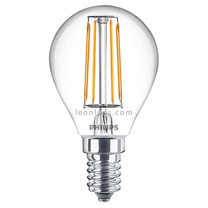 LED-Birne E14 P45 Filament mit einer Leistung von 4.3W, die 40W einer herkömmlichen Glühbirne entspricht, hat eine Lichtstärke von 470Lm in zwei Lichttönen: warmweiß mit 2700K und neutrales Licht mit 4000K.
