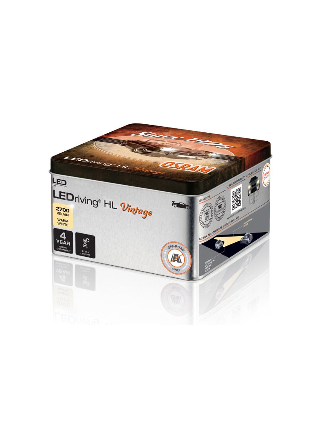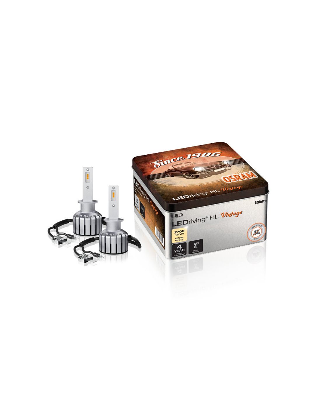 Die LEDriving HL Vintage Abblend- und Fernscheinwerfer von OSRAM ersetzen konventionelle Halogenlampen und sind mit 12 V kompatibel. Mit der neuesten LED-Technologie und einem sehr kompakten Design ermöglichen diese Lampen hohe Kompatibilität und eine einfache Installation für Autos mit den entsprechenden Halogenlampentypen. Die Fahrer können die Vorteile der LED-Technologie nutzen, ohne hohe Temperaturen, ohne UV-Emission, geringeren Stromverbrauch und eine längere Lebensdauer in den Scheinwerfern und ohne Einfluss auf die Ästhetik der Alten.