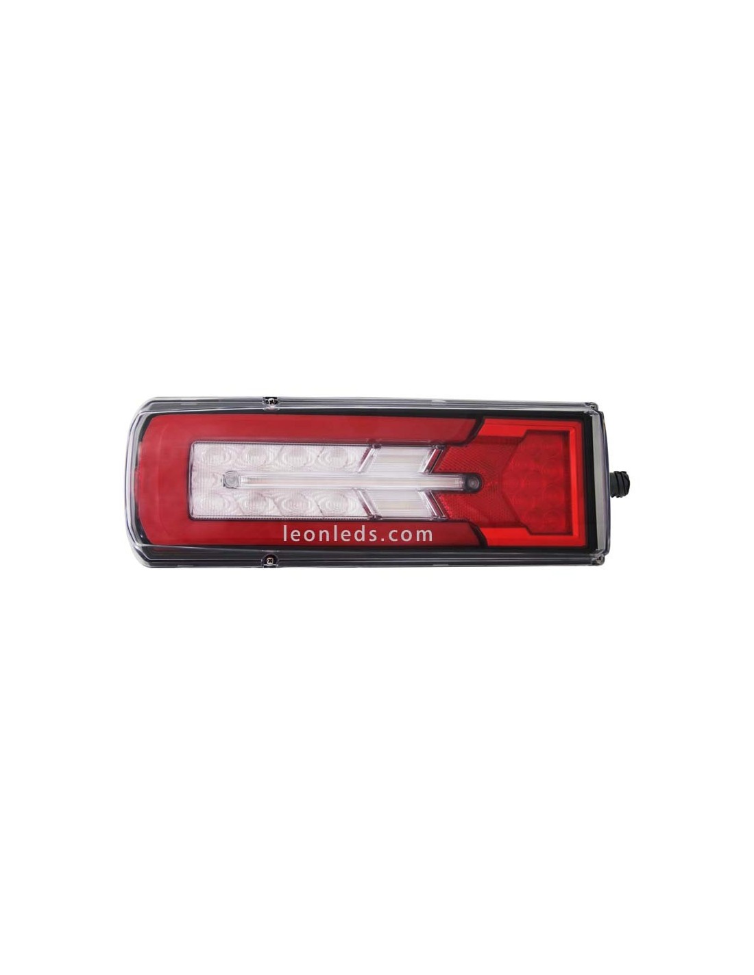 Rücklicht LED mit seitlichem Stecker und 8 Funktionen geeignet für 24V, zum Einbau in Zugmaschine mit blinkendem Licht, hat eine Länge von 37 cm.