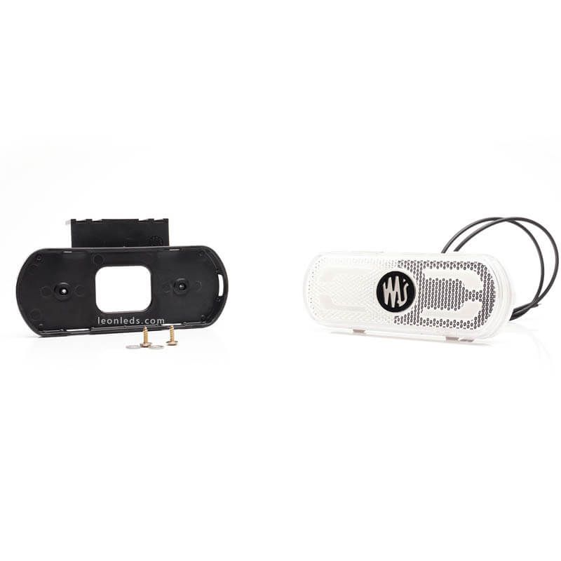 Dieses ist in Amber für die Seite, Weiß für die Vorderseite und Rot für die Rückseite erhältlich, enthält eine Halterung für die Installation auf der Oberfläche und eine weitere Halterung für die Installation hängend, wie du auf dem Foto sehen kannst.