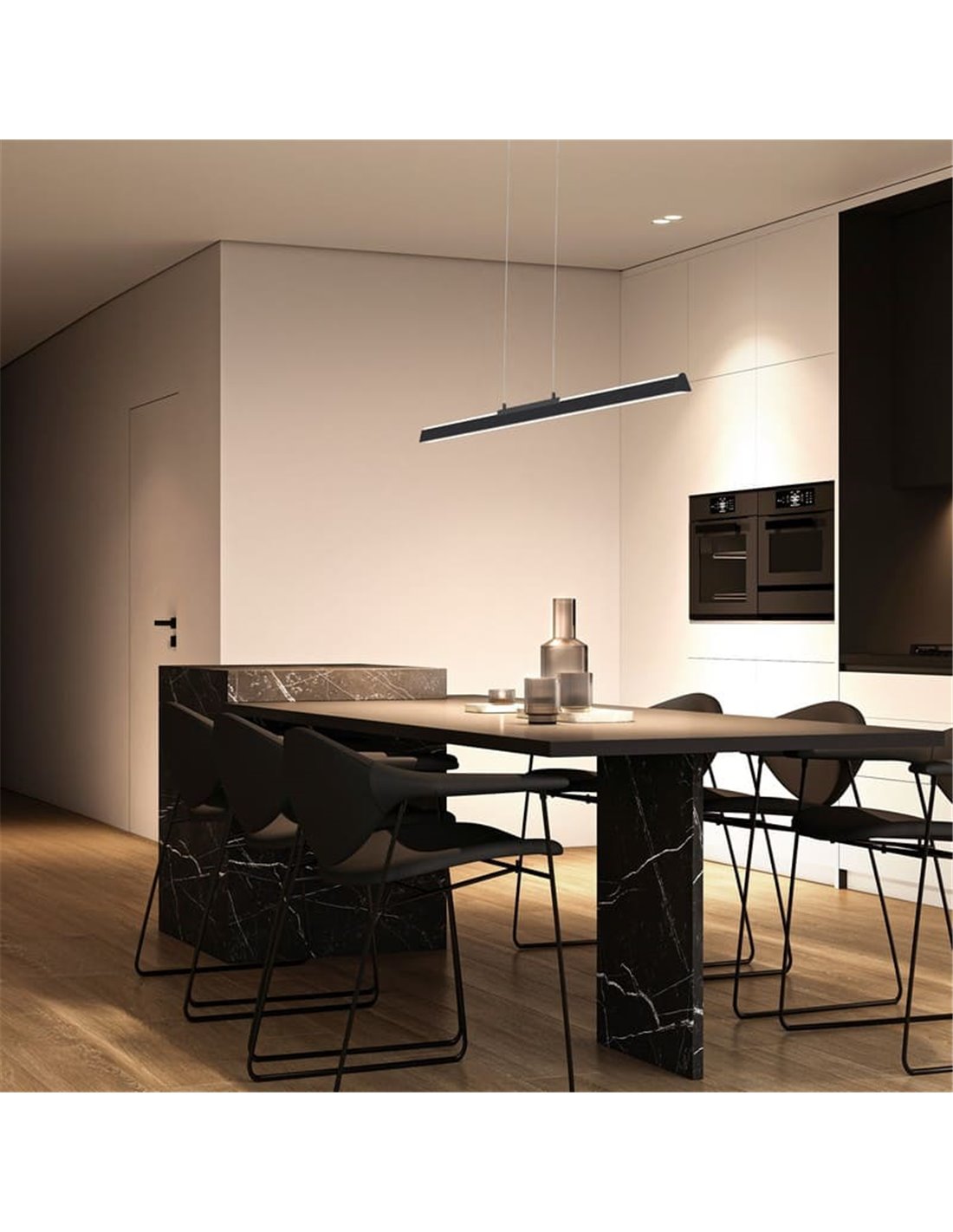 Mit einer eleganten goldenen Oberfläche bietet diese LED-Hängelampe LINEAR eine Beleuchtung nach oben und unten, die die Ästhetik jedes Raums verstärkt. Mit einer Länge von 91,5 cm und 36 W Leistung ist sie perfekt, um anspruchsvolle und einladende Atmosphären in Essbereichen oder Wohnzimmern zu schaffen.