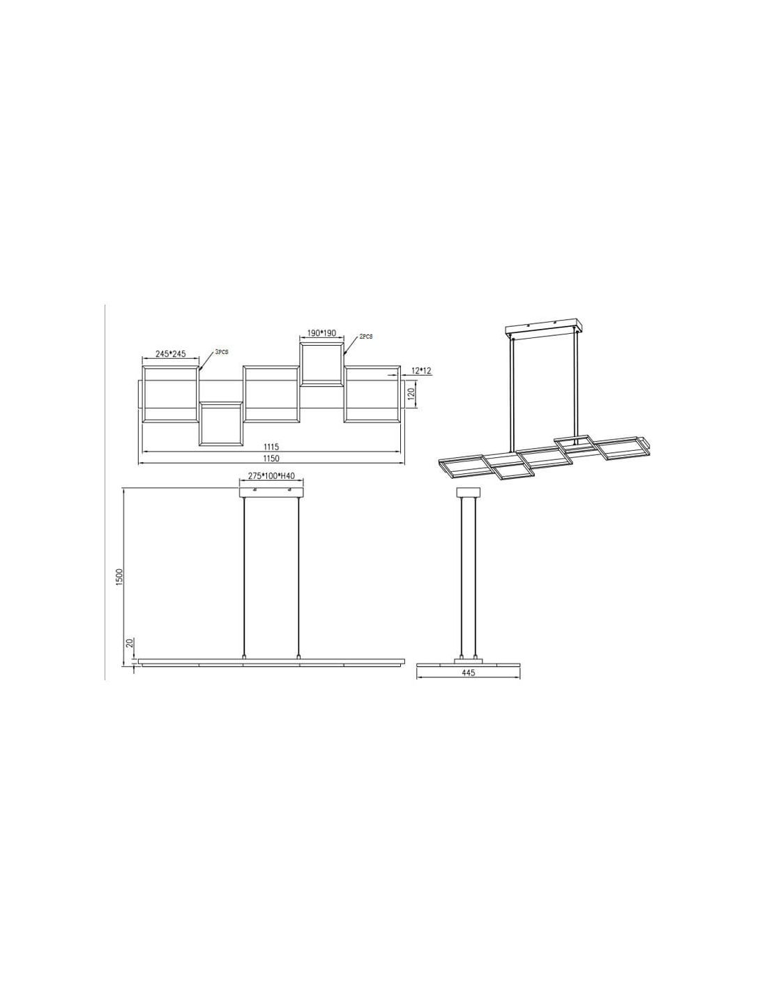 Die moderne Hängeleuchte Harper funktioniert mit einer 42W SMD LED Glühbirne, um eine Farbtemperatur von 3000K mit 5700 Lumen bereitzustellen.
