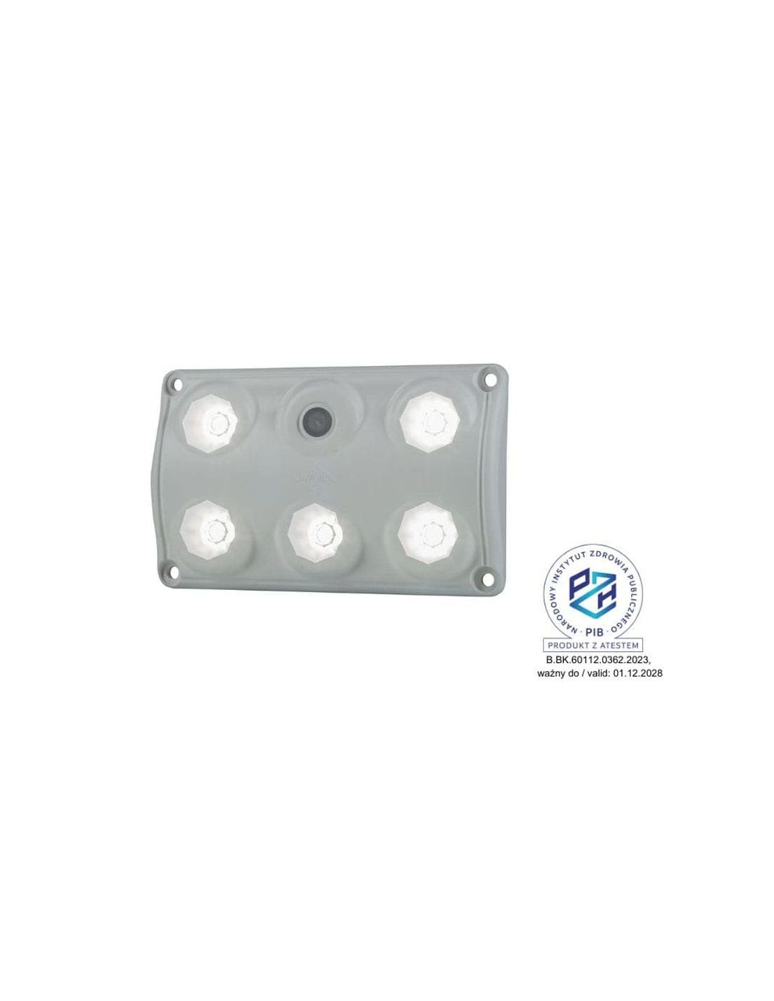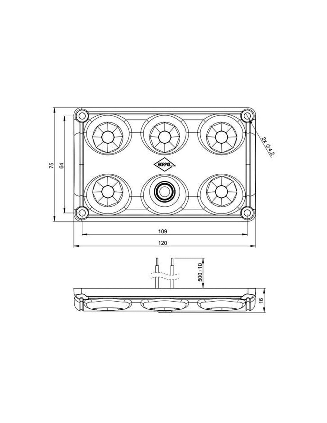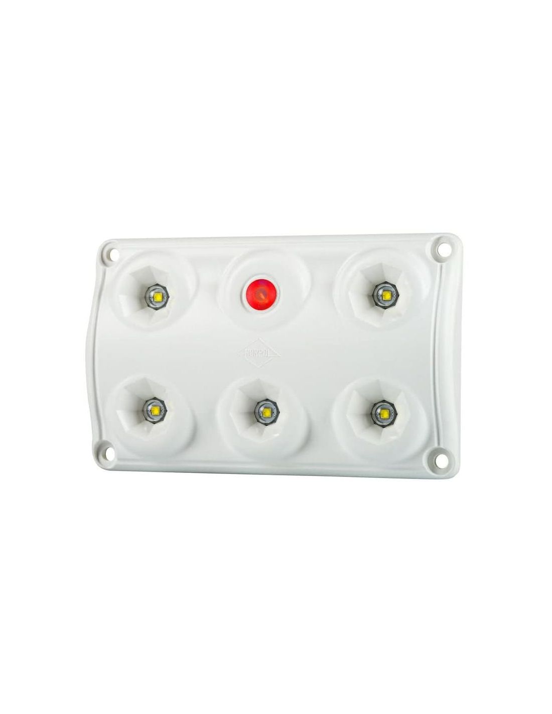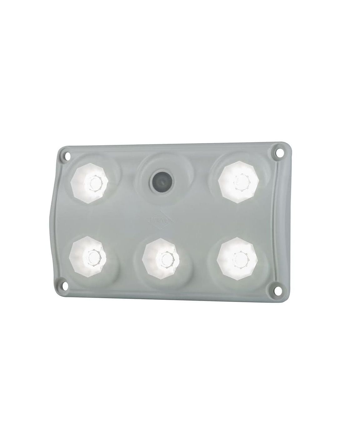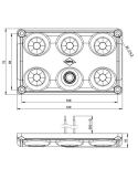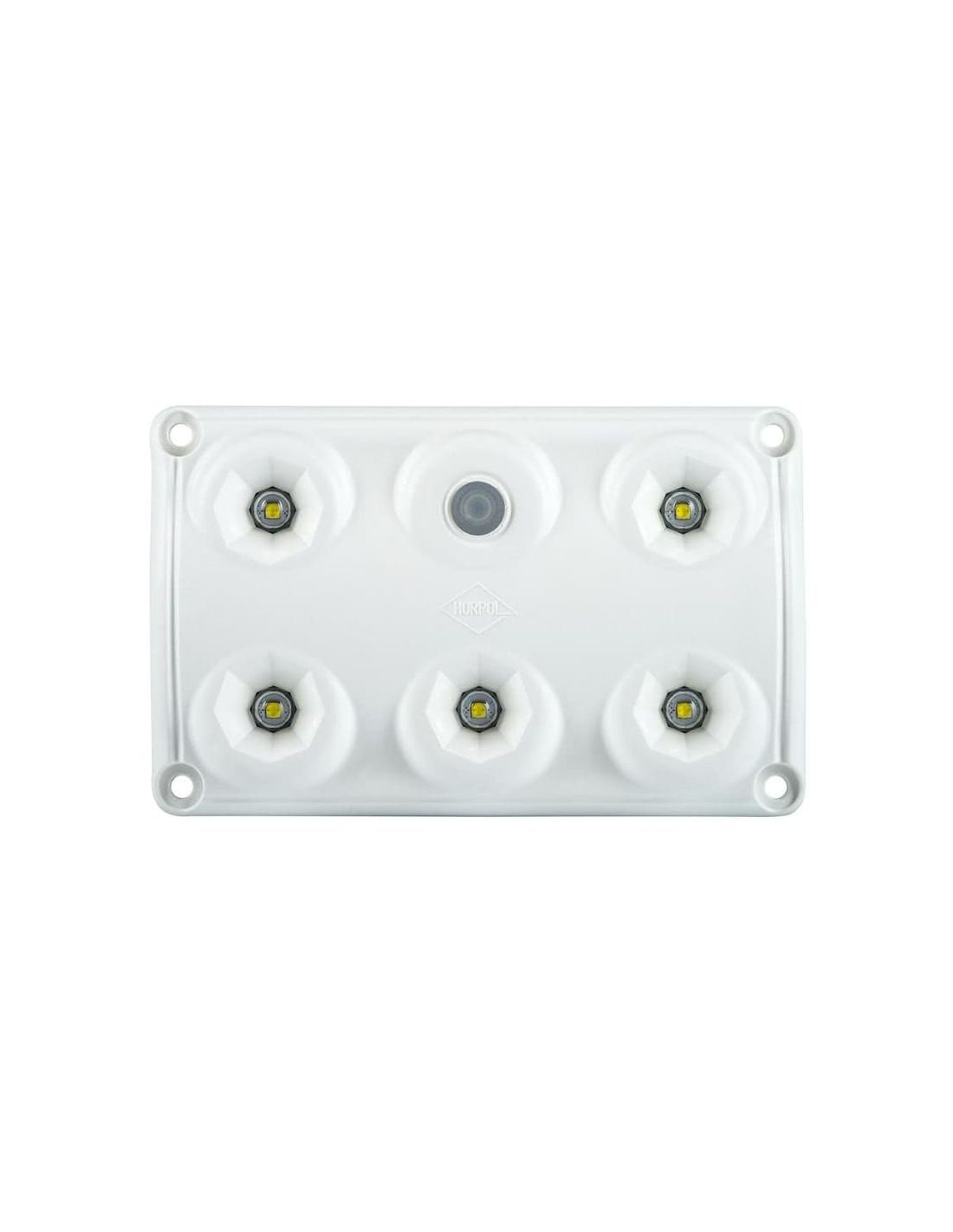 Quadratisches Modell mit 2 Lichtleistungsstufen und Schalter zum Ausschalten. Dieses Modell ist für 12 V und 24 V geeignet und hat einen Betriebstemperaturbereich von -30 °C bis 50 °C, Modell LWD 2153 von Horpol.