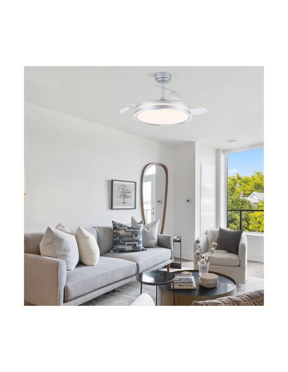 Eleganz und Funktionalität in einem modernen Design: Unser LED-Deckenventilator OKU ist die perfekte Wahl für alle, die Stil und Leistung in ihrem Zuhause kombinieren möchten. Mit einem zeitgenössischen Design und ausziehbaren Blättern in Silber bietet dieser Ventilator eine Leistung von 72W und 7920 Lumen, die helles Licht und eine frische Atmosphäre in jeden Raum bringt.