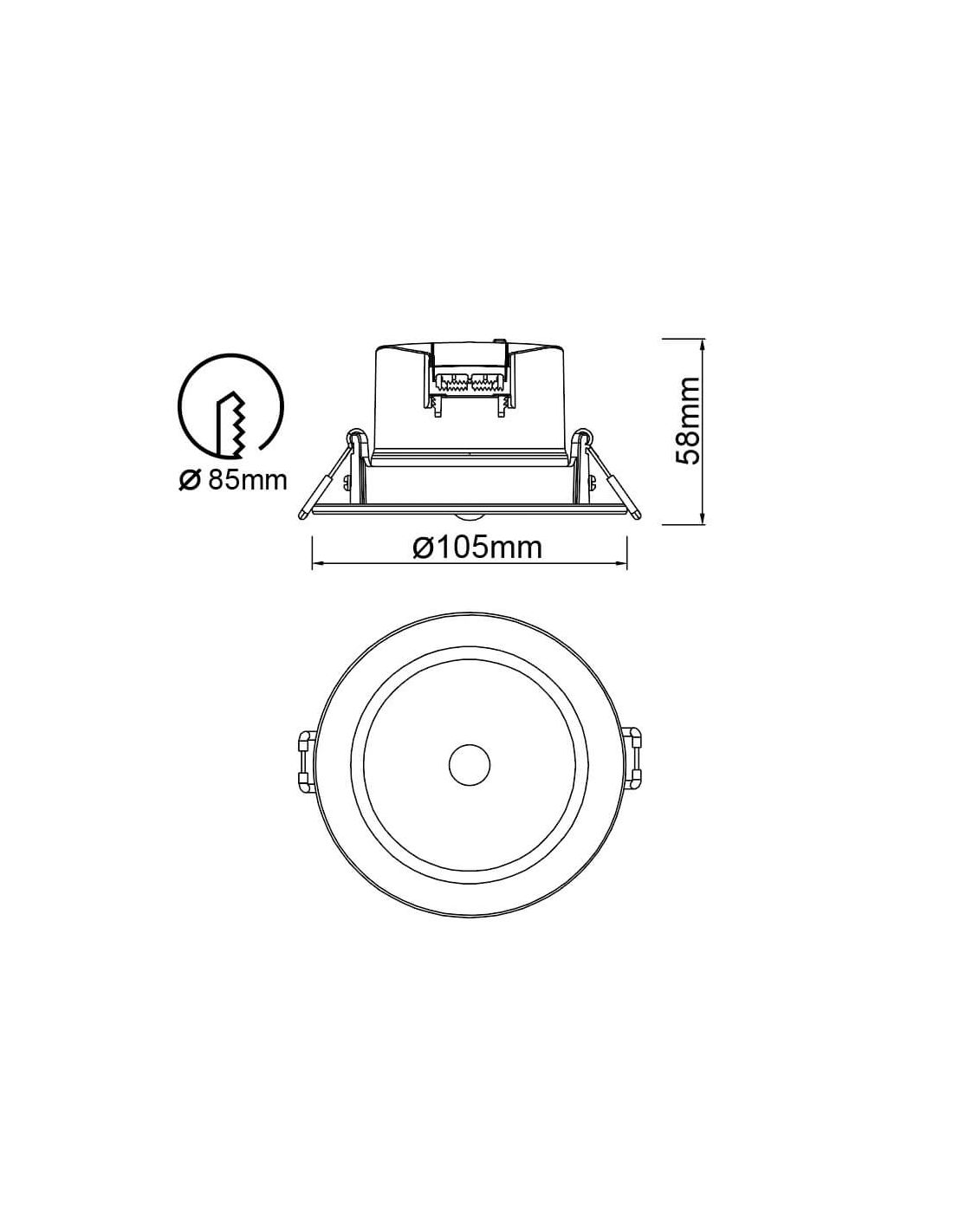 Durchmesser: 10,5 cm | Höhe: 5,8 cm | Ausschnittdurchmesser: 8,5 cm