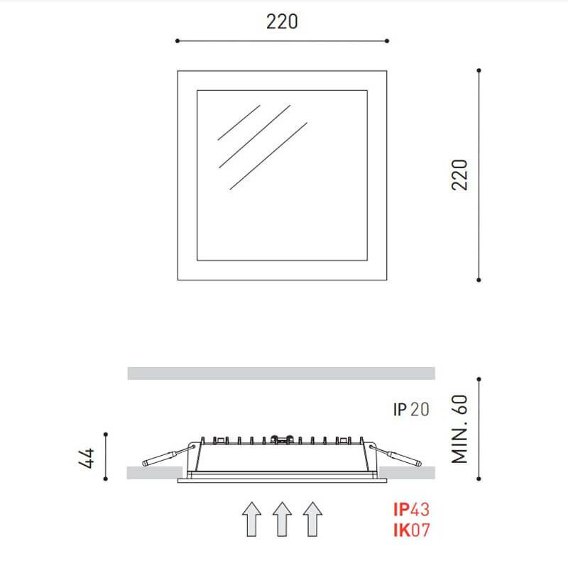 Außerdem bietet dieses LED-Downlight 22W Leistung und ist in 2 verschiedenen Farbtemperaturen erhältlich: 3000K (3025Lm) und 4000K (3075Lm), sowie in nicht dimmbarer Version, mit Push-Dimmung und mit DALI-Dimmung.