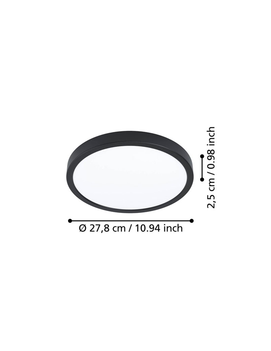 LED Downlight schwarz für Oberflächenmontage Ø280mm FUEVA 6, 14,2W 1800Lm CCT, IP20. Ultra-dünnes Design von 25 mm, 1800 Lm und regulierbares Licht CCT 2700K / 4000K / 6500K. Nutzung für Innenräume IP20. Maße: Ø 280mm x 25mm.