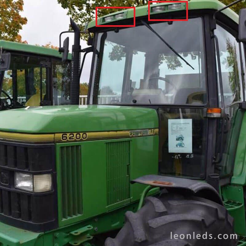 Einbau-LED-Scheinwerfer für Traktoren der Marke John Deere mit einer Leistung von 60W (20W effektive Leistung) und einer maximalen Lichtstärke von 3.500LM und 1.900Lm effektiv. Der John Deere LED-Scheinwerfer ist so gestaltet, dass er leicht als Ersatz für konventionelle Halogenscheinwerfer in Traktoren der Serie 00, Serie 10, 40, 42, 44, 45, 46, 47 und 48 verwendet werden kann, ohne dass Modifikationen erforderlich sind, Plug and Play Bezug John Deere R161288.