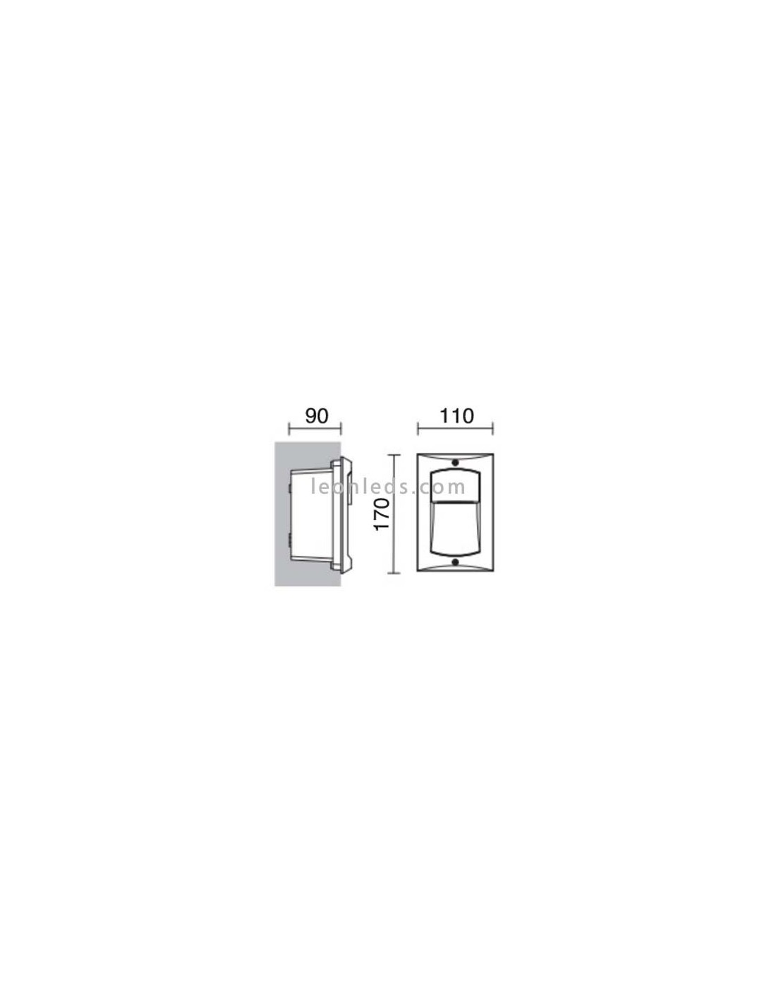 Diese Leuchte ist rechteckig und hat einen Ausschnitt von 9,5 X 15Cm. Ihre Höhe beträgt 17Cm, ihre Breite 11Cm und ihre Tiefe 9Cm.