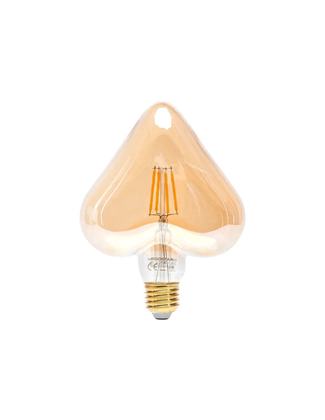 Die LED-Filamentlampe in Herz-Form Aigostar ist für diejenigen gedacht, die die Lampe selbst in ein dekoratives Element verwandeln möchten. Ihr Design aus bernsteinfarbenem Glas mit sichtbarem Filament und E27-Fassung passt perfekt in Pendelleuchten, einfache Lampen oder Leuchten im industriellen und Vintage-Stil.