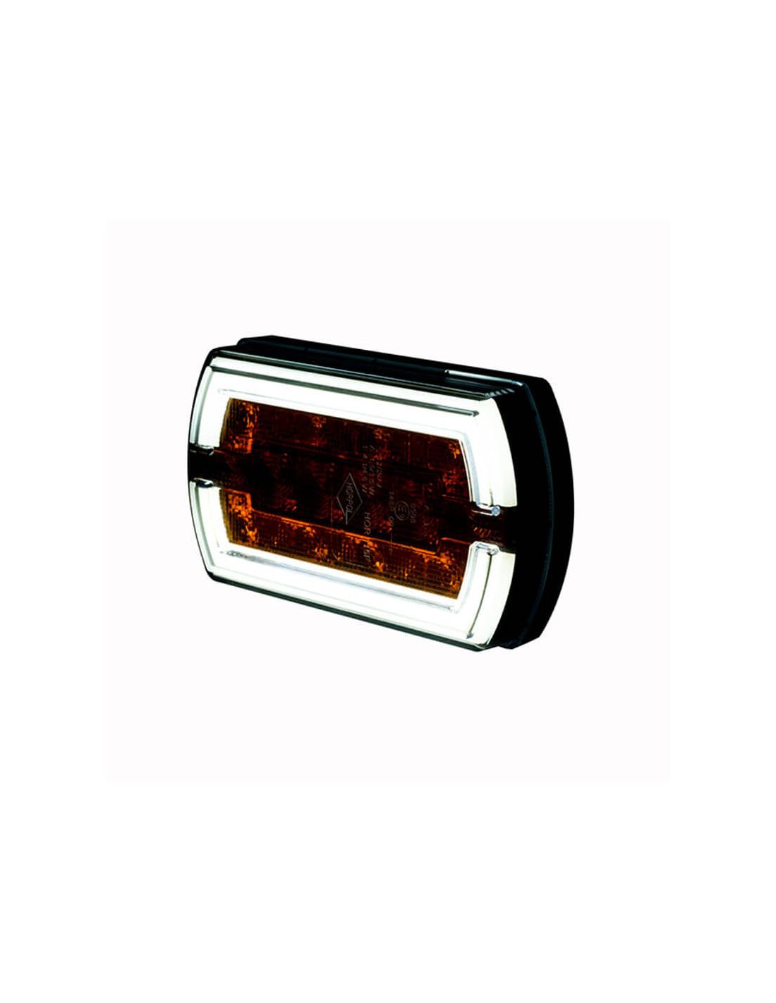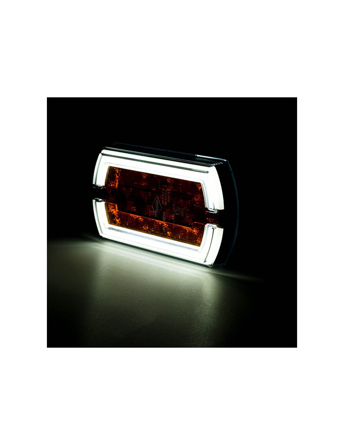 Homologierter Frontscheinwerfer LED mit 2 Funktionen, Positionslicht und Blinklicht (A, 1), ideal für die Installation an der Vorderseite von landwirtschaftlichen oder industriellen Fahrzeugen, dieser rechteckige Scheinwerfer ist vollständig wasserdicht und tauchfähig IP68, beinhaltet 1 Meter Kabel und ist für 12 Volt und 24 Volt geeignet.