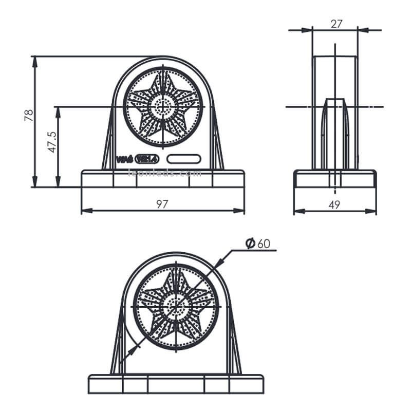 LED-Galibo rot und weiß der Serie W21.4STAR von Was, enthält 35Cm Kabel mit 2X0,75mm2. Die Lampenschirme mit eingeschaltetem LED-Licht sind vorne weiß und hinten rot. Homologiert als seitliches Galibo-Licht, hat einen Schutzgrad gegen Wasser und Staub von IP68, ist vollständig tauchfähig und hat keine Hand, kann sowohl auf der rechten als auch auf der linken Seite installiert werden. (Preis pro Einheit).