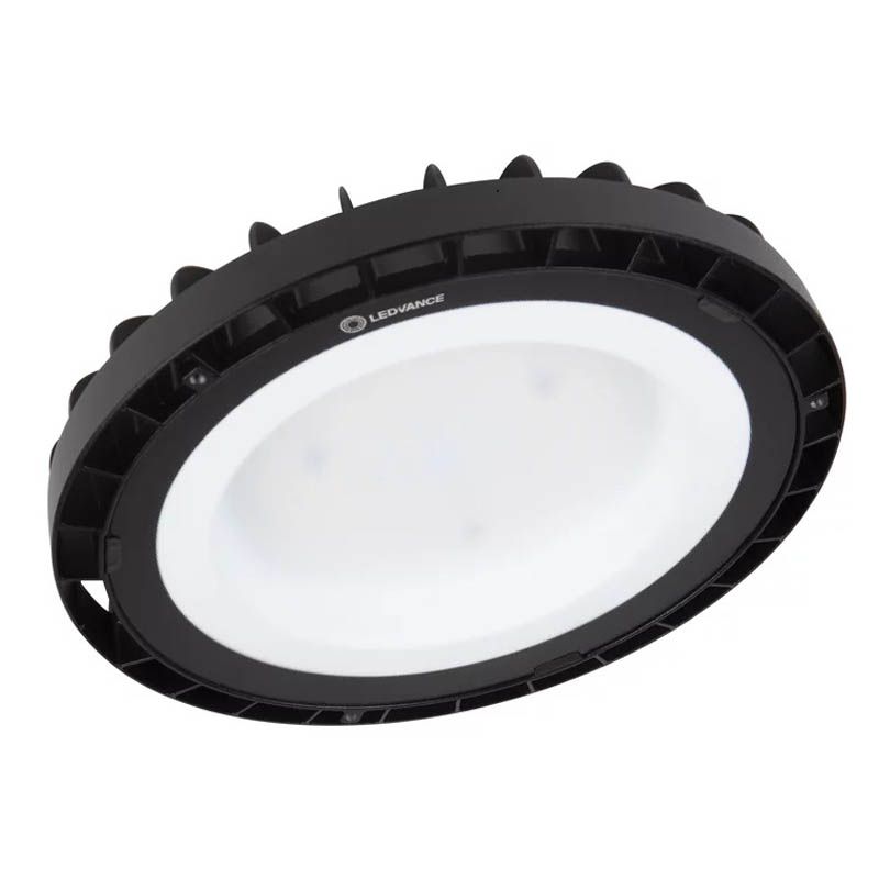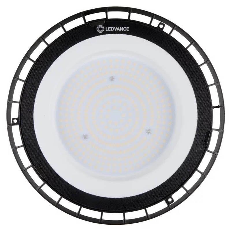 Industrielle LED-Haube mit einer Leistung von 166W, die 400W HID ersetzt, Modell High Bay Compact Value Class der Marke LedVance mit einer Garantie von 3 Jahren (Reihe mit gutem Preis-Leistungs-Verhältnis), erhältlich mit Lichtfarben 4000K und 6500K, und ihr Lichtstrahlwinkel beträgt 110º. Ihre Lichtleistung beträgt 20.000Lm und ihre Lichtausbeute ist 120lm/w.