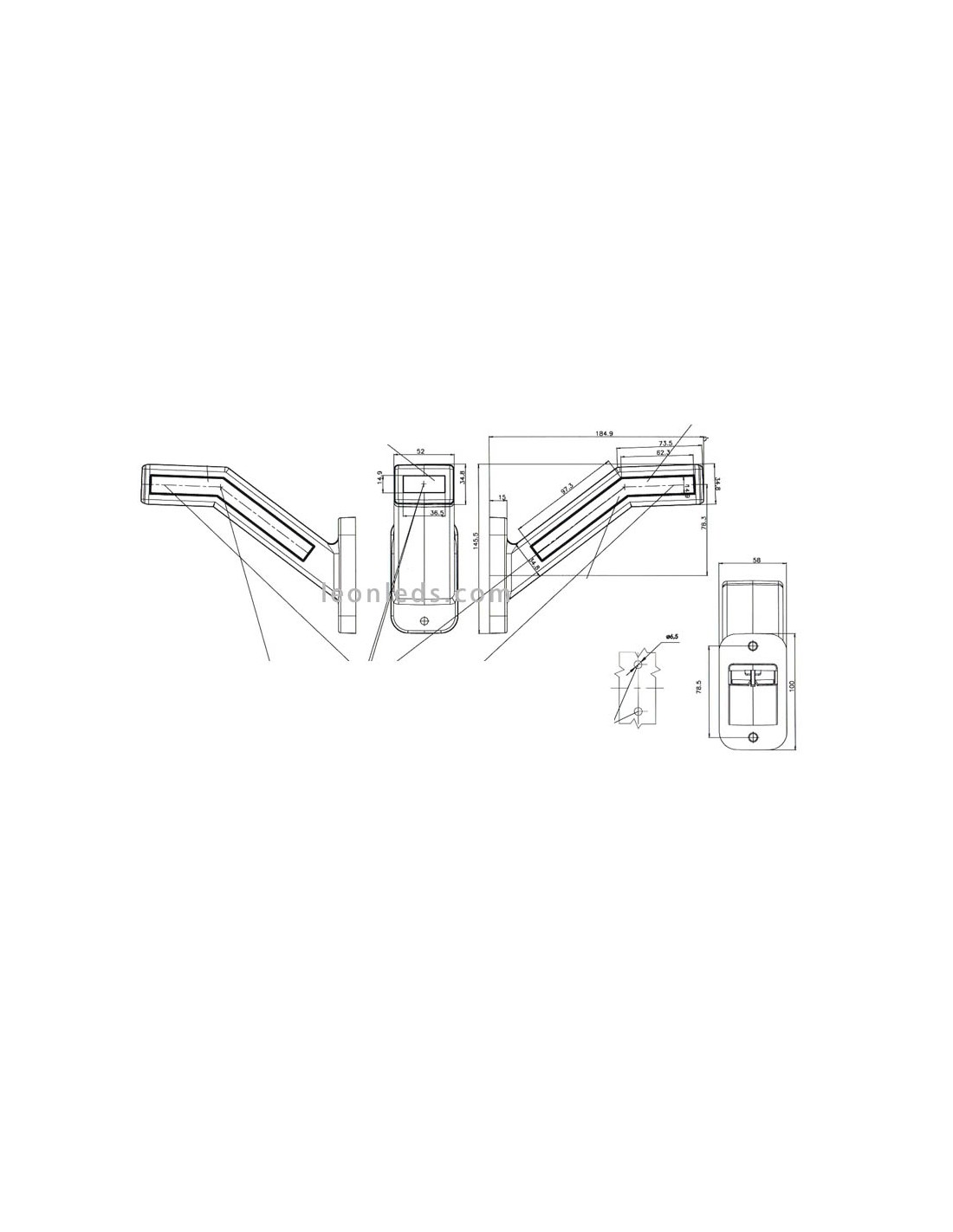 Die Abmessungen des LED-Horns können Sie auf einem der Fotos sehen. Um dieses Pilotlicht zu installieren, müssen Sie es einfach an die Stromversorgung anschließen und mit 2 Schrauben befestigen.