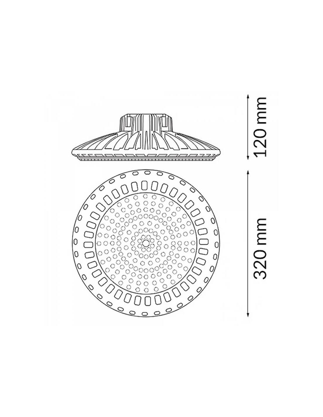 UFO LED 200W mit Philips-Treiber und 0-10V-Dimmung. Hohe Lichtausbeute von 150 lm/W, Schutzart IP65 und IK08. Ideal für Hallen, Werkstätten und industrielle Bereiche. Lichtfarbe 5000K.