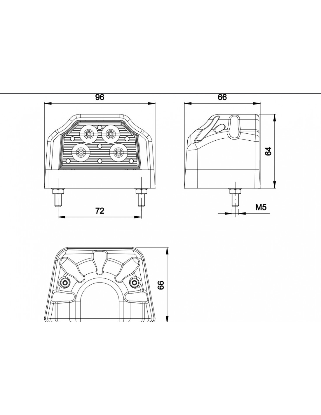 Dieses LED-Kennzeichenlicht ist vollständig genehmigt und kann sowohl an Pkw-Anhängern, Anhängern oder Plattformen installiert werden, um das Kennzeichen eines Traktors oder eines anderen Fahrzeugs zu beleuchten. Es handelt sich um ein LED-Kennzeichenlicht, das einem von Hella verwendeten Modell, das oft bei Lkw-Plattformen eingesetzt wird, entspricht.