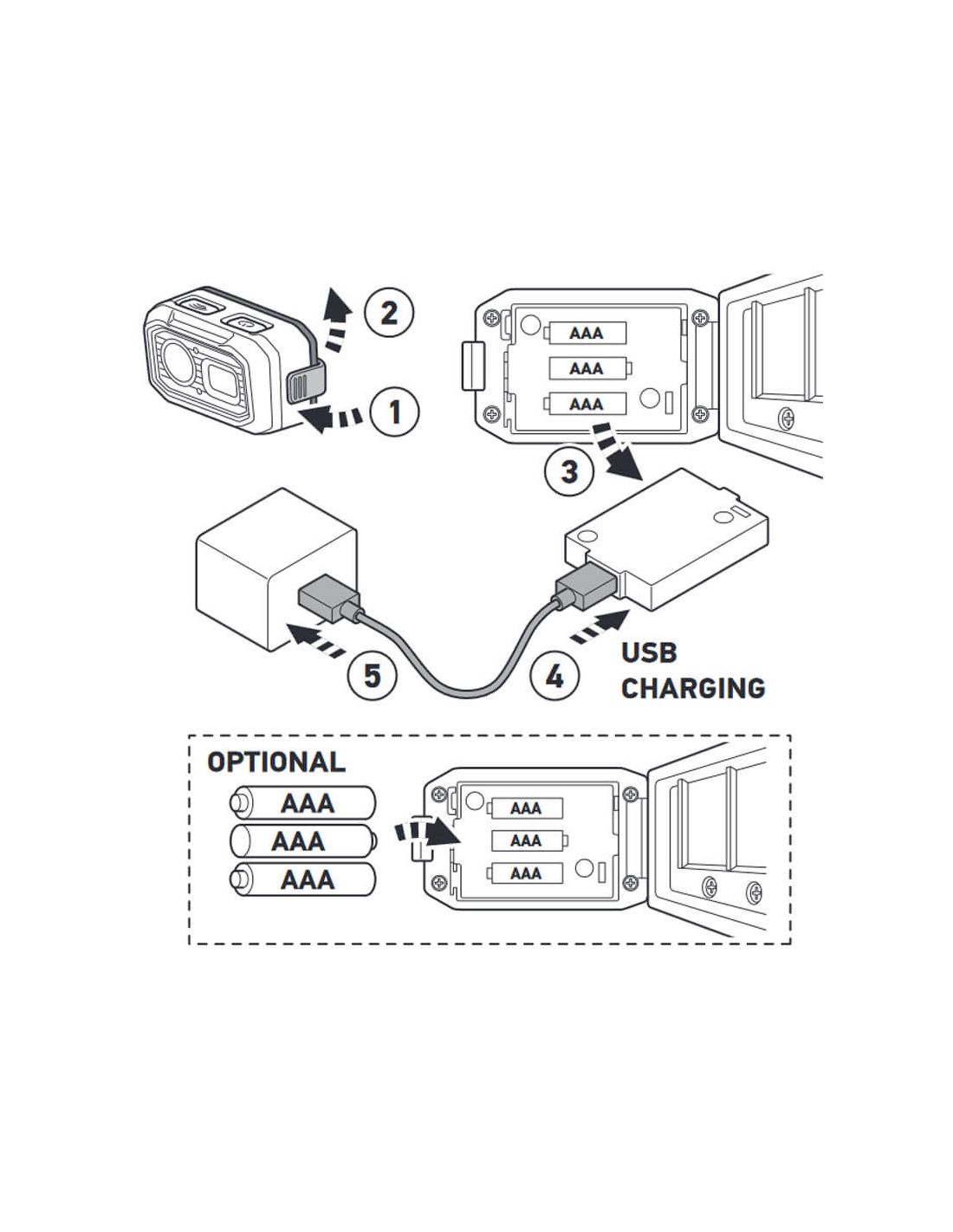Enthält: Akku, verstellbares Band, Lampe und ein 75 cm Mikro-USB-Kabel.