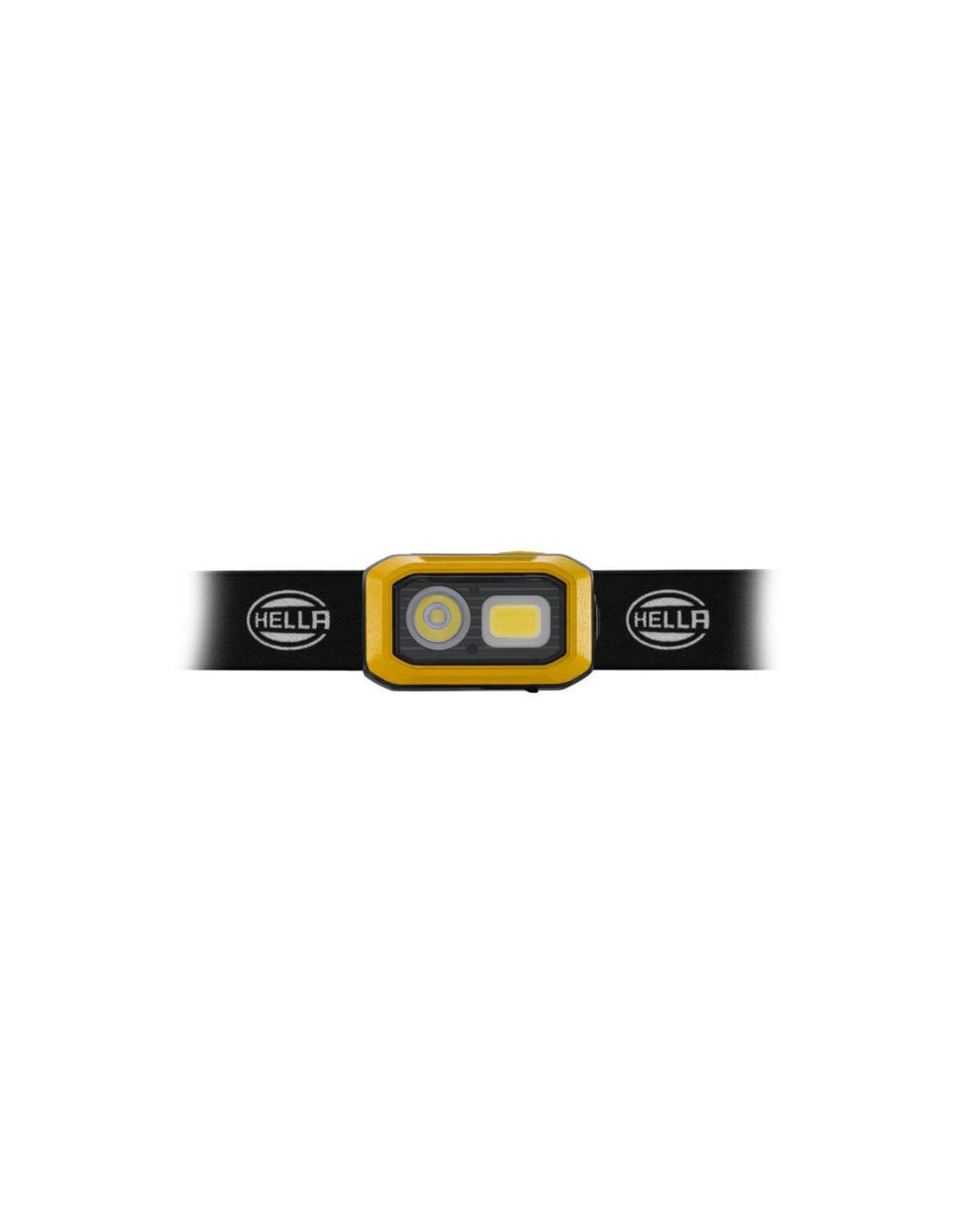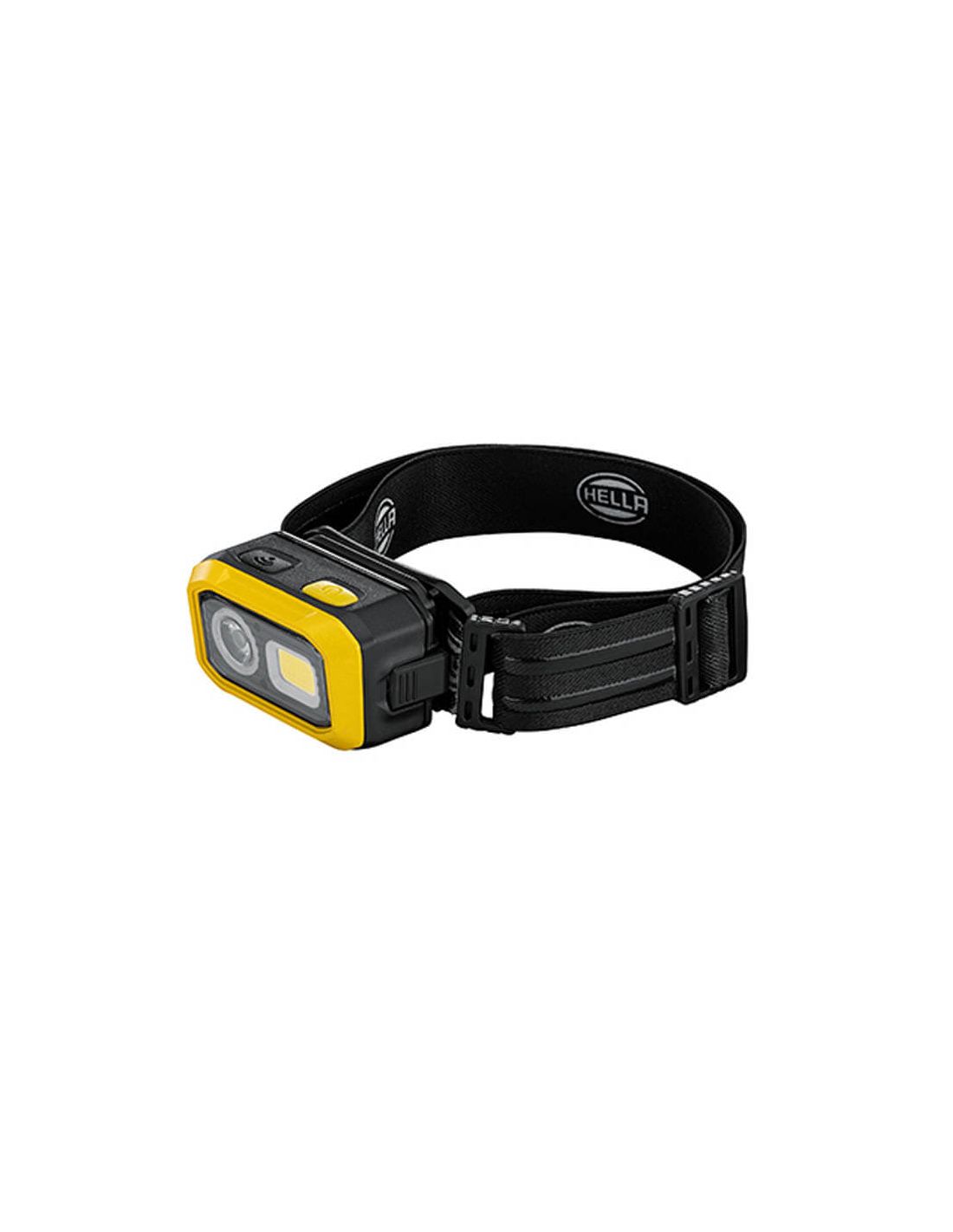 Wiederaufladbare LED-Kopflampe Hella UHL500 2XM 359 002-001 mit manueller Lichtaktivierung, die Lampe kann von dem Band abgenommen und als Handlampe verwendet werden, zudem ist die Rückseite magnetisch, was mehr Vielseitigkeit bietet. Die Lampe kann bis zu 60 ° geneigt werden.