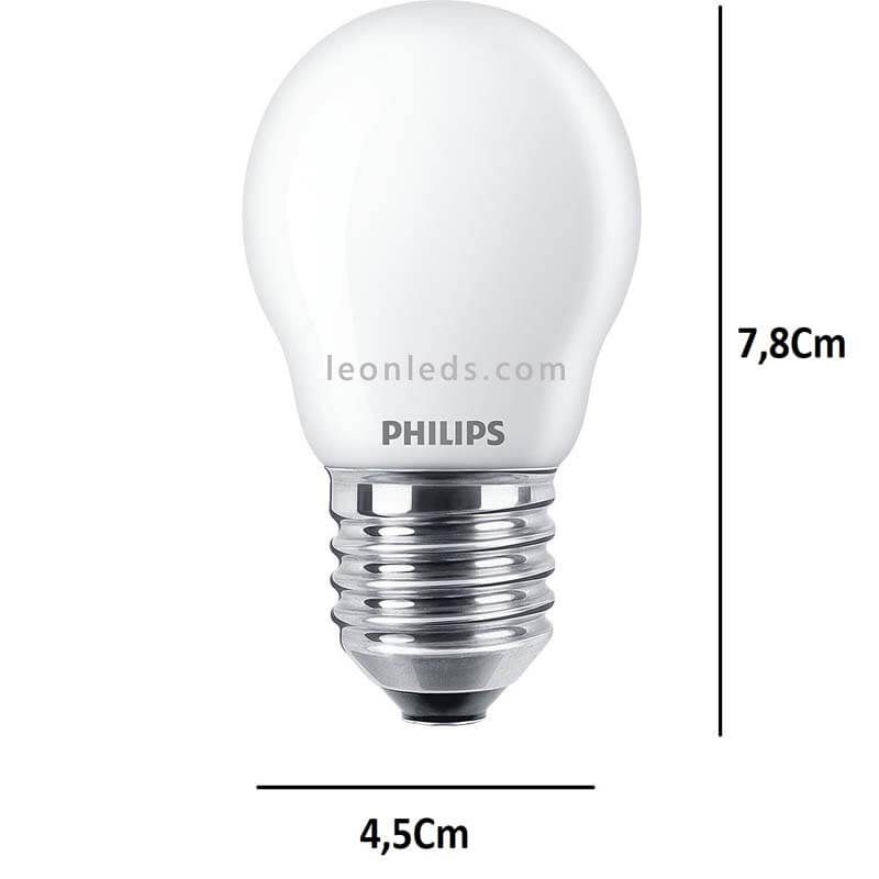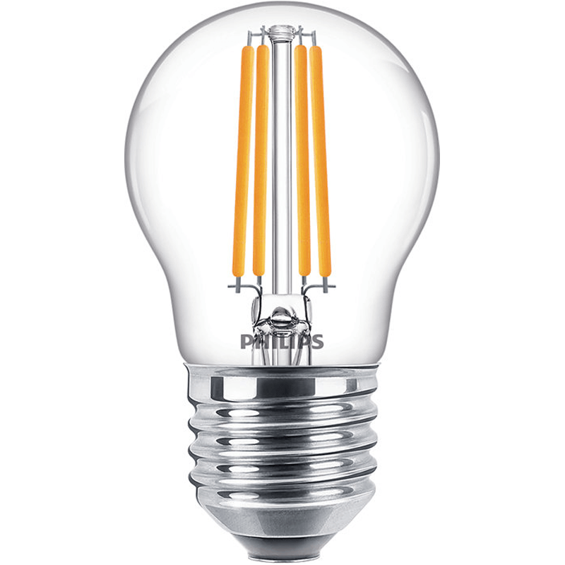 Die LED-Lampe esferisch G45 mit E27-Fassung und transparentem Glas von Philips bietet die gleiche Lichtintensität von 806Lm in den zwei verfügbaren Lichttönen 2700K und 4000K. Sie hat eine Leistung von 6,5W, was 60W einer herkömmlichen Glühbirne entspricht.