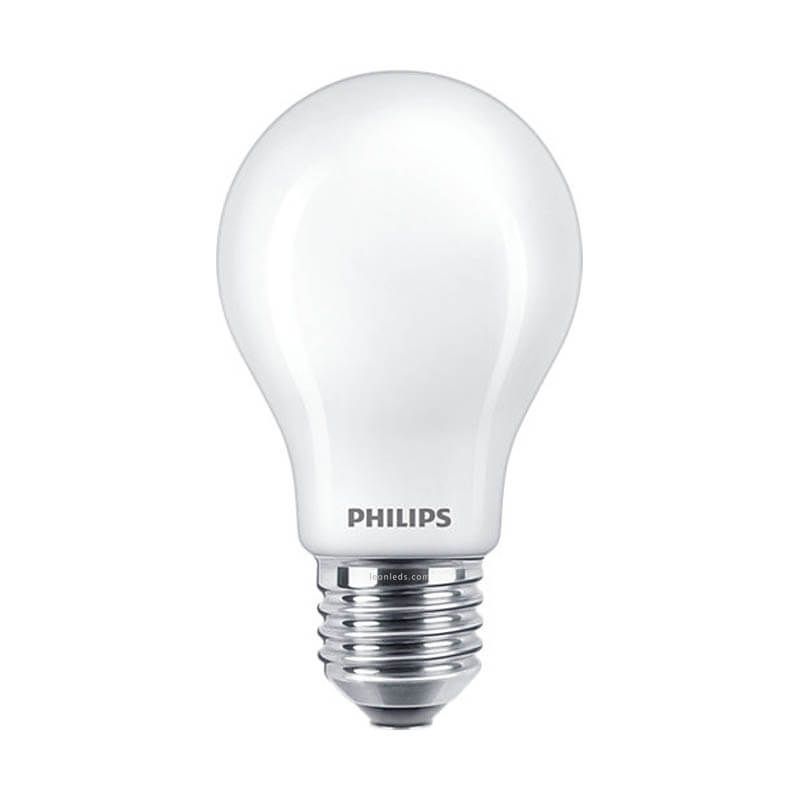 LED-Lampe mit E27-Fassung und A60-Format mit einer Leistung von 10.5W, äquivalent zu 100W mit einer Lichtintensität von 1521Lm, die neue Reihe von Philips ist effizienter und umweltfreundlicher, da es sich um eine Lampe aus mattiertem Glas handelt.